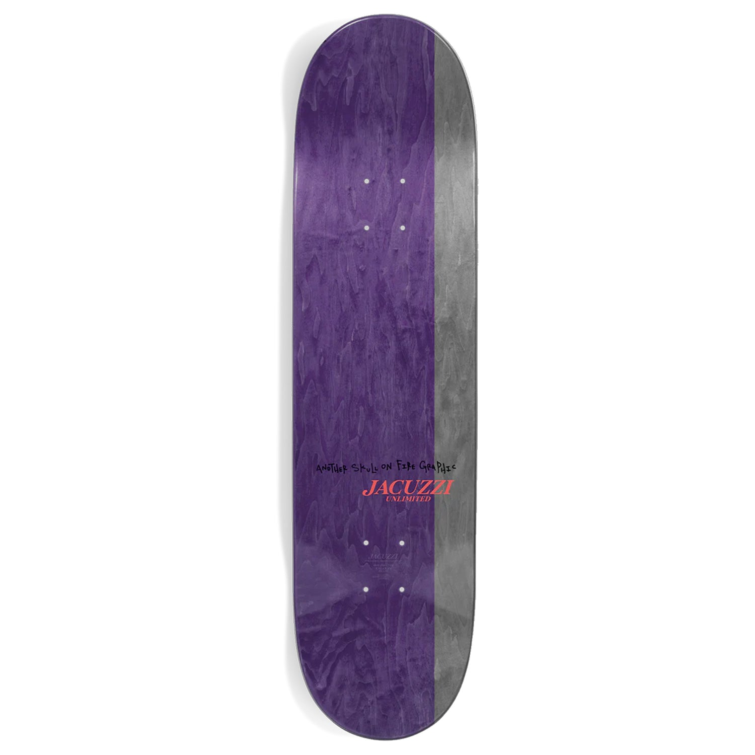 JacuzziUnlimited skateboard decks are constructed with 7-ply 100% North American Maple with Epoxy Glue. Split top veneer colors. Individually pressed. Wheel wells. Medium concave, Medium Kick. This board measures 8.5" x 32.325" with a 14.5" wheelbase.