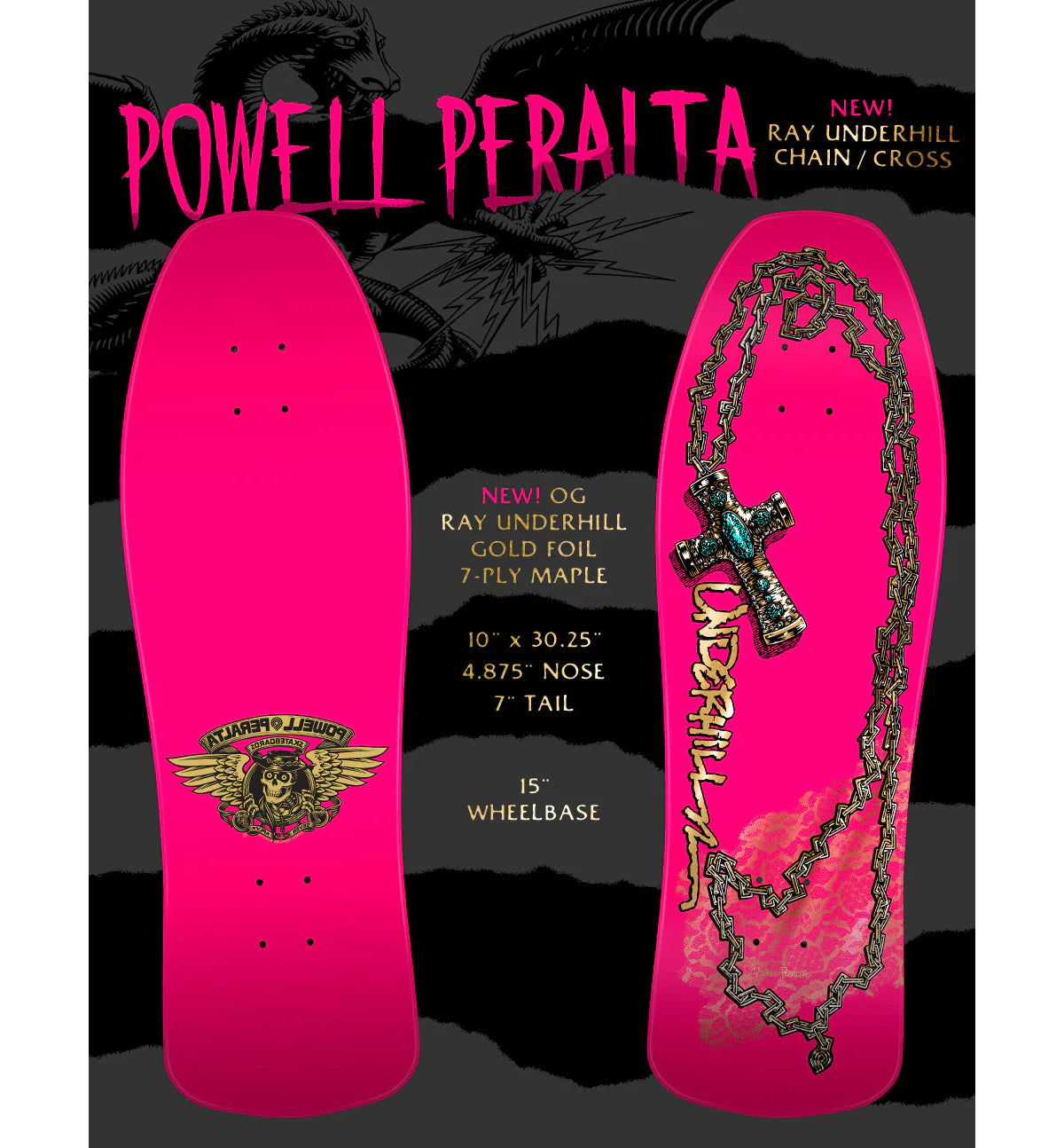 Powell Peralta Skateboard Deck Underhill Cross Pink Foil Old School Reissue