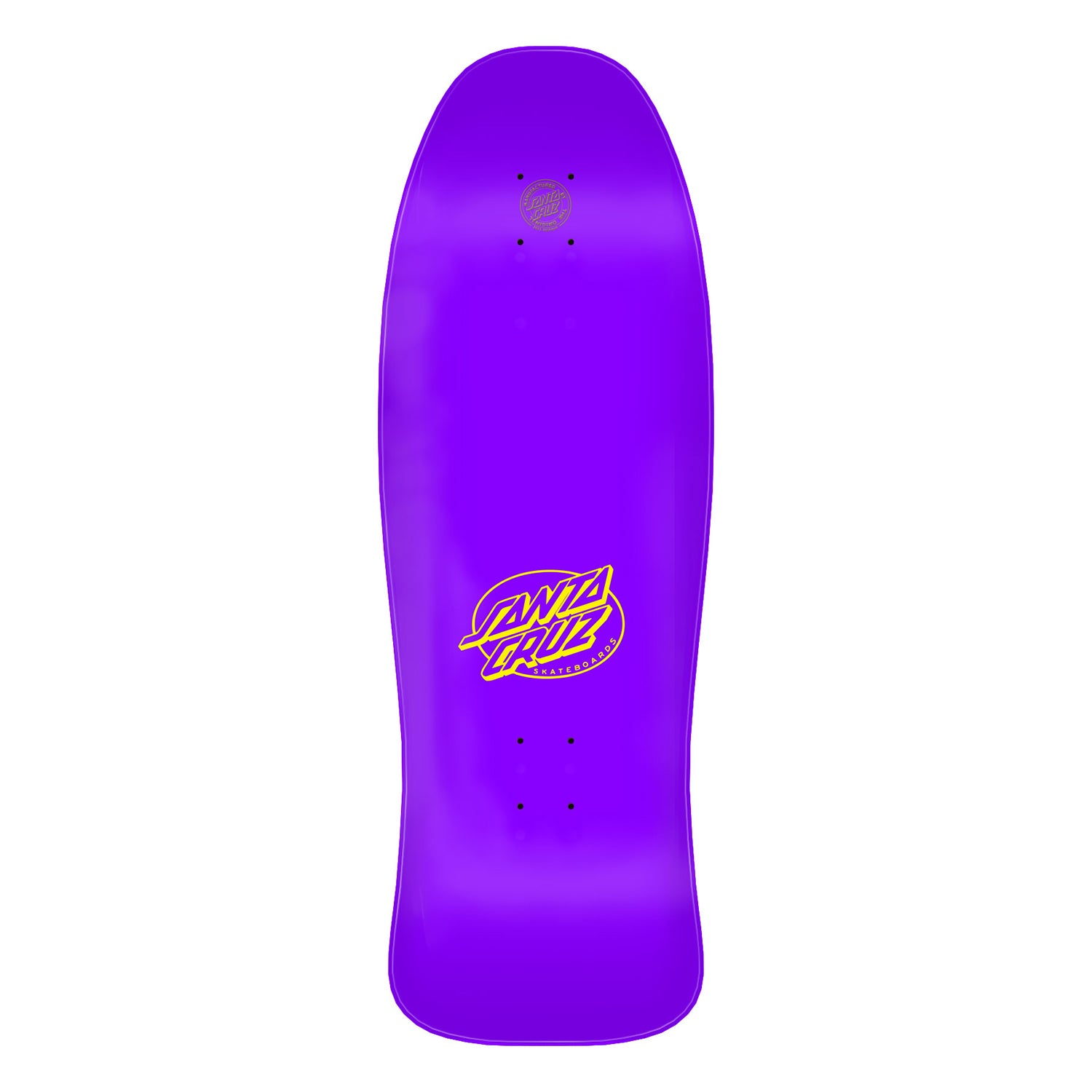 The Santa Cruz Skateboards Kendall Pumpkin Reissue deck features iconic Jeff Kendall Pumpkin artwork by Jim Phillips on a fully dipped matte purple deck, Jeff Kendall's classic Pumpkin reissue shape with a 15.125" wheelbase and Cruz Missile II Concave. This board measures 10" x 30.12" with a 14.125" wheelbase. 7 ply North American Maple pressed individually using epoxy - making a strong, responsive deck with long lasting pop and consistent concave and kick. Cruz Missile II concave is Santa Cruz's infamous tech concave from the 1980s with aggressive, multi-dimensional side to side concave and tail kick along with forward set rocker that comfortably lock in your feet in key areas for a completely unique riding experience - cruising the streets or skating transition on old school or shaped decks with longer tail than nose.
