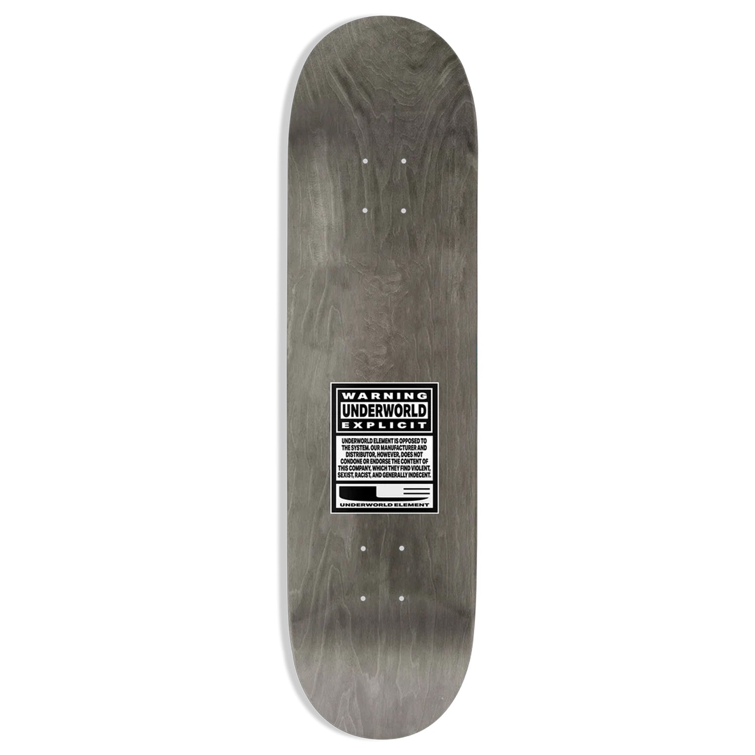 Limited Underworld Element heritage release by Sidewalk Distribution. 7-ply 100% North American Maple with Epoxy Glue. Individually pressed. Silver foil. Embossed graphic detail. This board measures 8.5" x 31.95" with a 14.25" wheelbase.