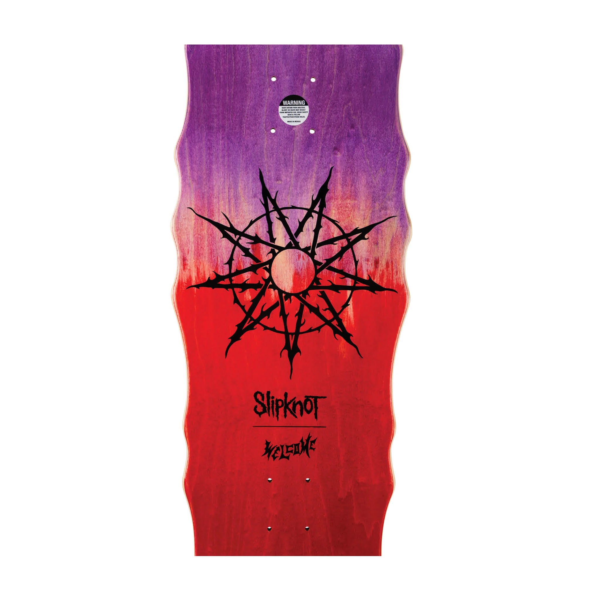 Official collaboration with Slipknot. Widow shape. Purple/red gradient veneer on top and bottom. Transparent prism foil over bottom veneer, inside Tribal S. Measures 10.0" x 31.0" with a 14.75" Wheelbase.