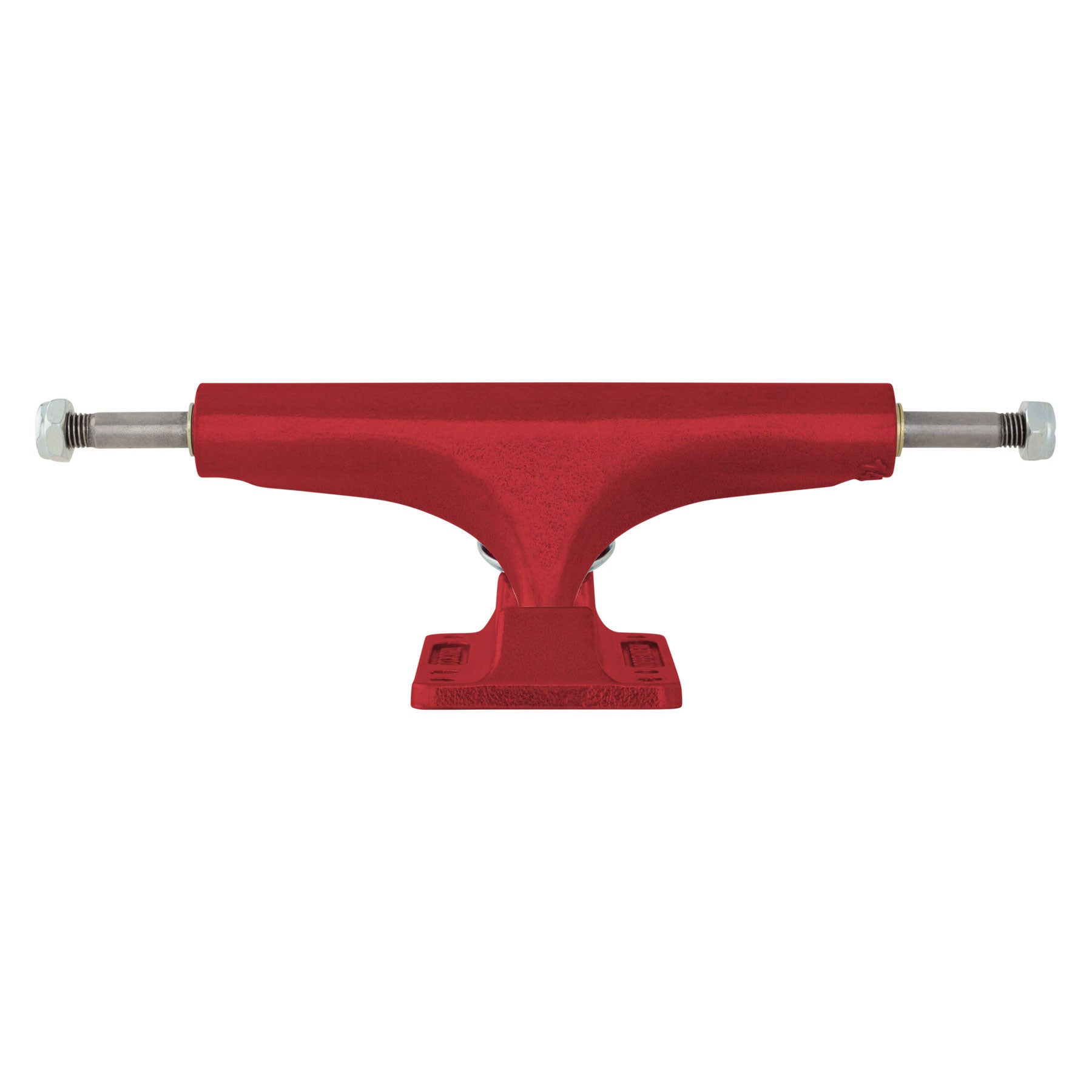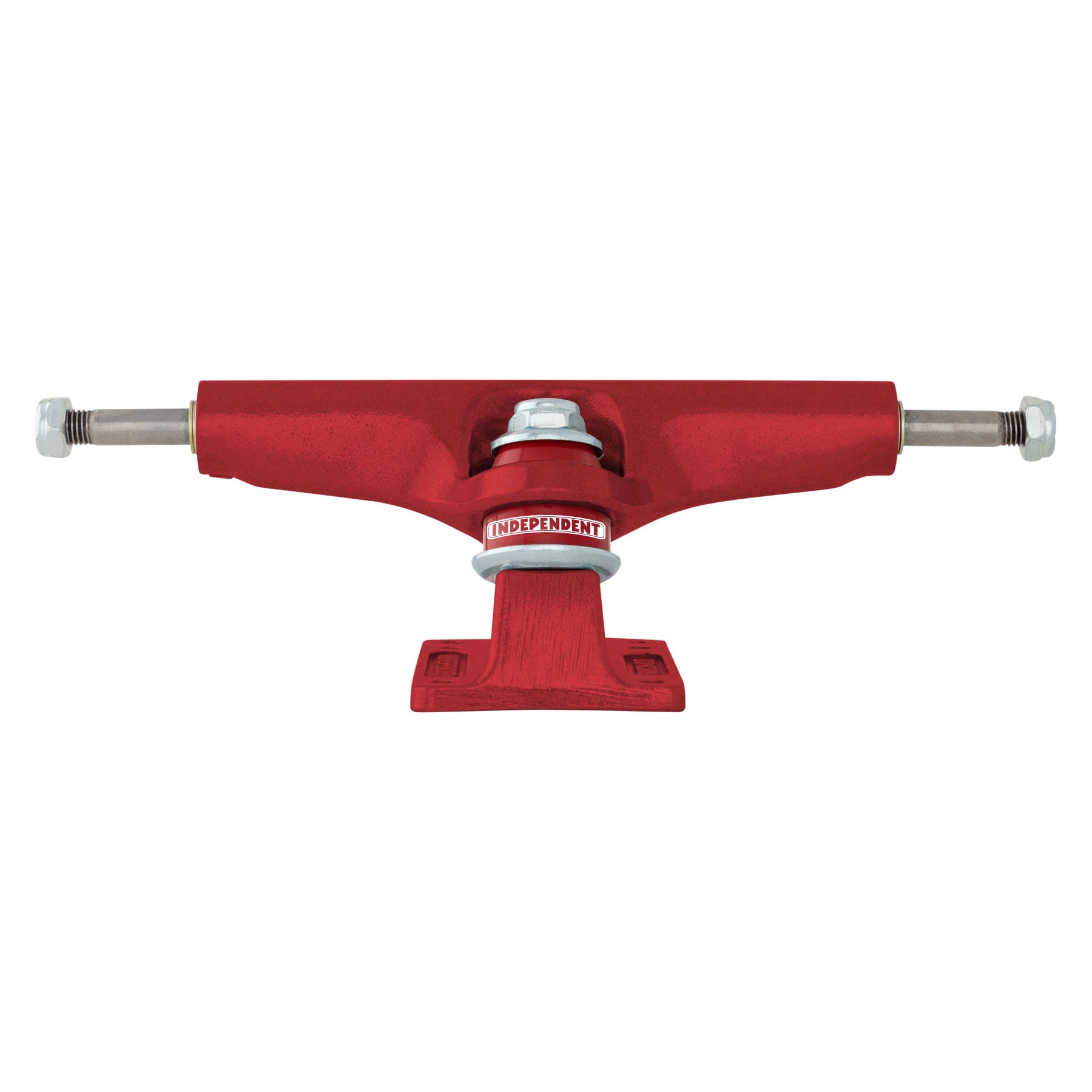 Independent Truck Company Stage 4 red featuring red powder coated hanger and baseplate, red Original Cushions, and silver washers and nuts.