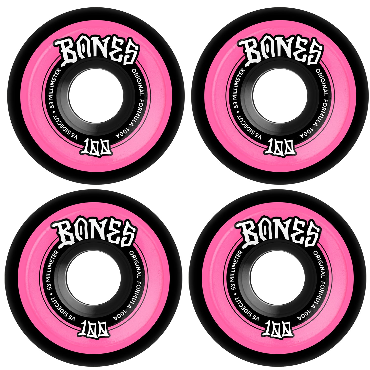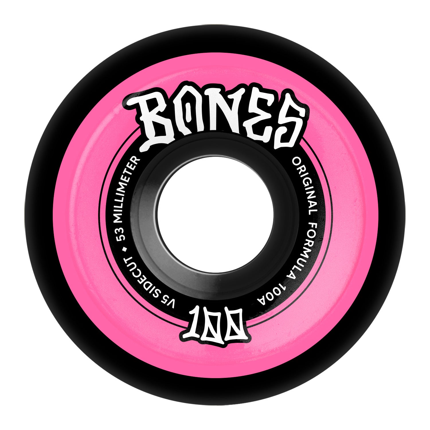 These Bones wheels feature the V5 Sidecut shape, poured with the original 100A formula. These Wheels Measure 53mm x 31mm. The V5 sidecut shape has sidecut walls designed for more stability, less drag, and longer grinds.