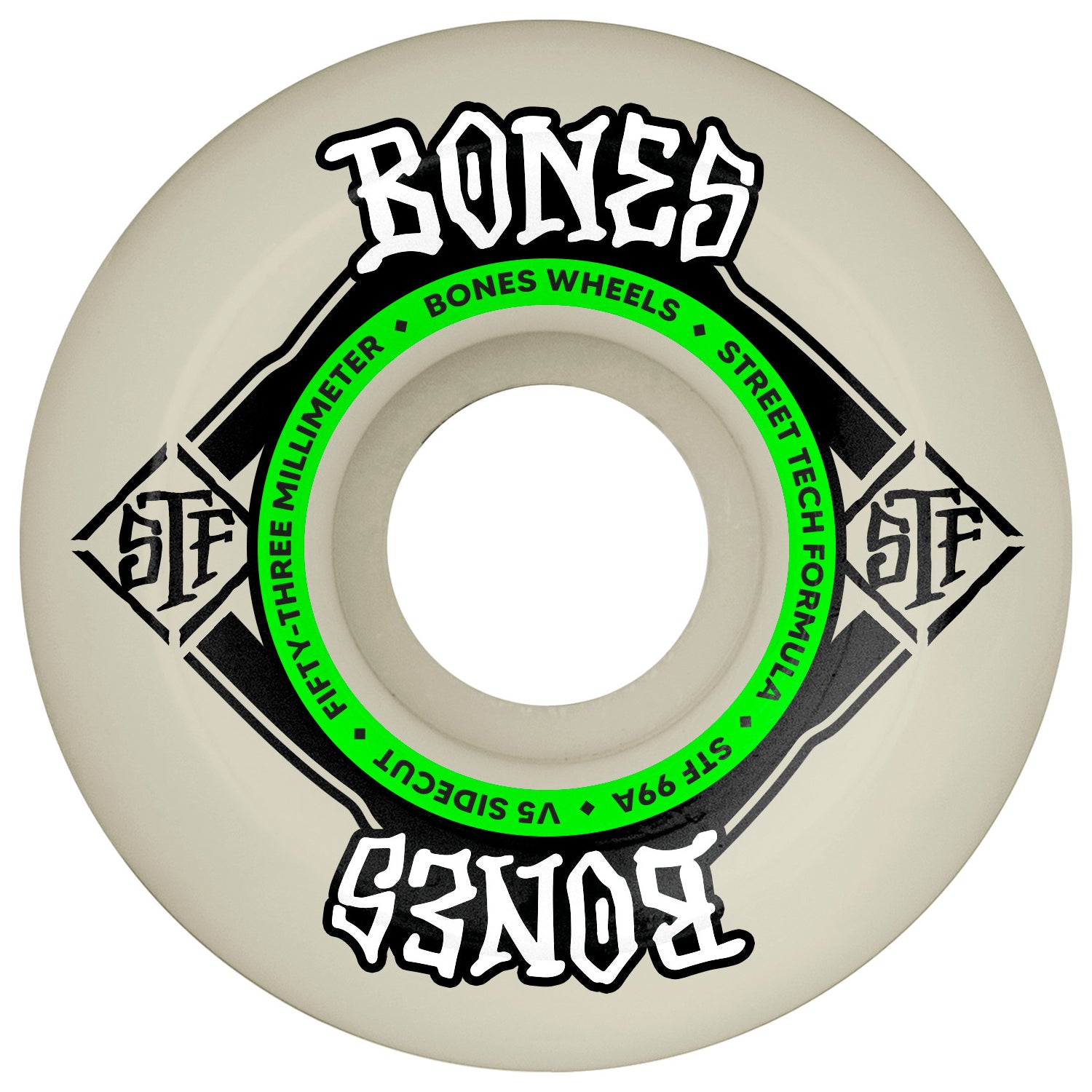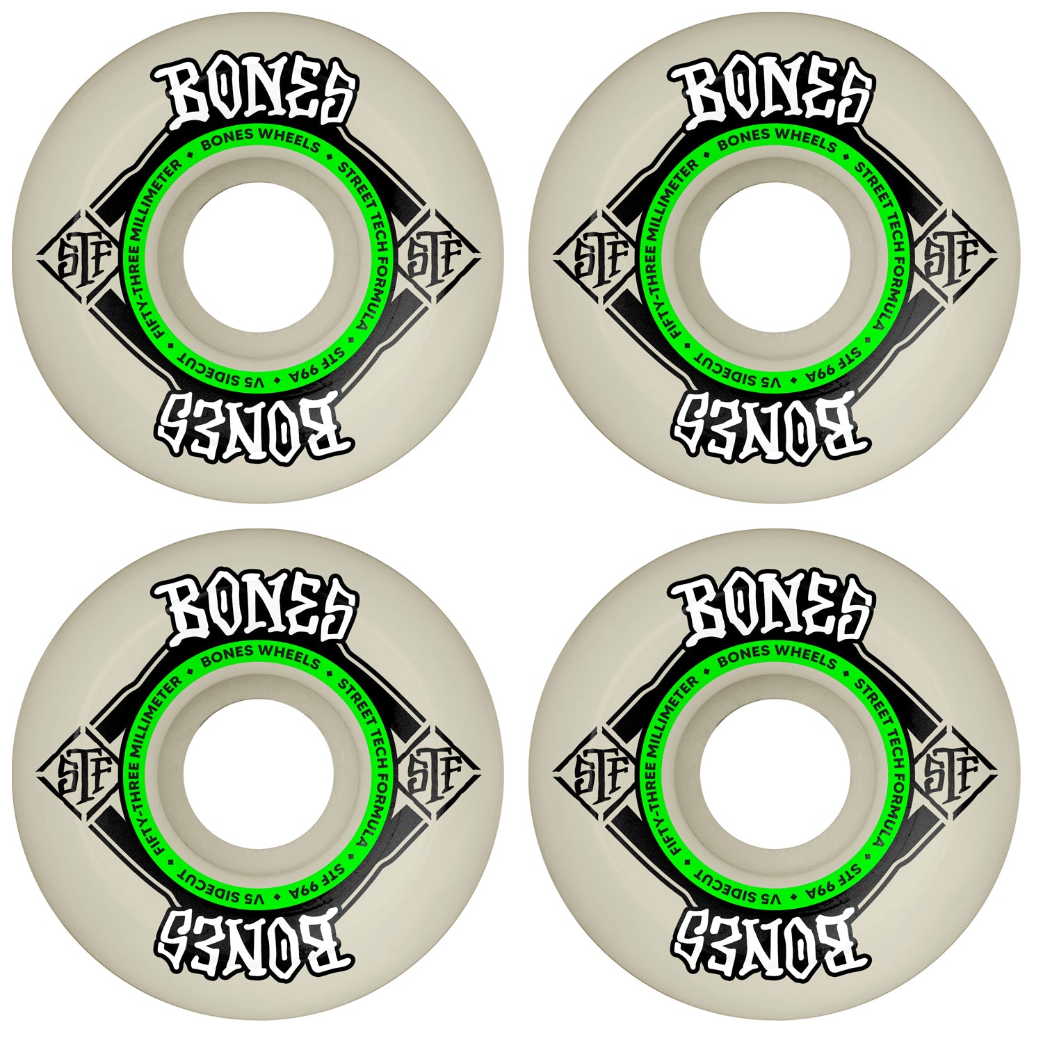 In 2005, Bones introduced STF wheels and changed the game. Offering a new formula for the generation, they forced wheel brands to look for ways to improve their offerings. STF is known as the wheel that rolls fast, grips when needed, and slides when you want, providing more confidence without flat spotting. Outperforming and lasting several times longer than most other wheels in the same tier. Made in the USA.