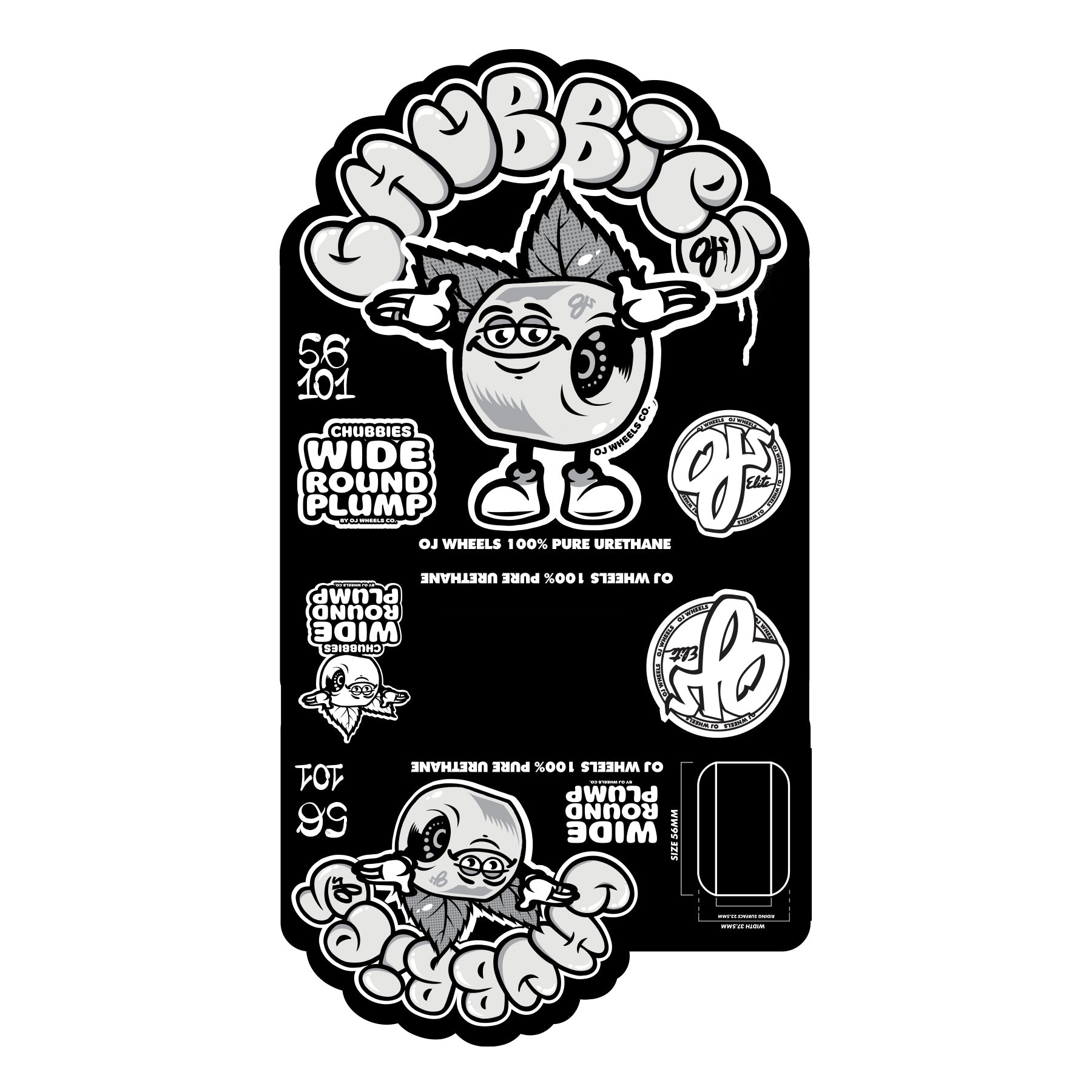 OJ's all new Chubbies shapes feature a super-wide riding surface for the best slides, with big round radial edges that make getting on-and-off of curbs, ledges, and edges effortless.