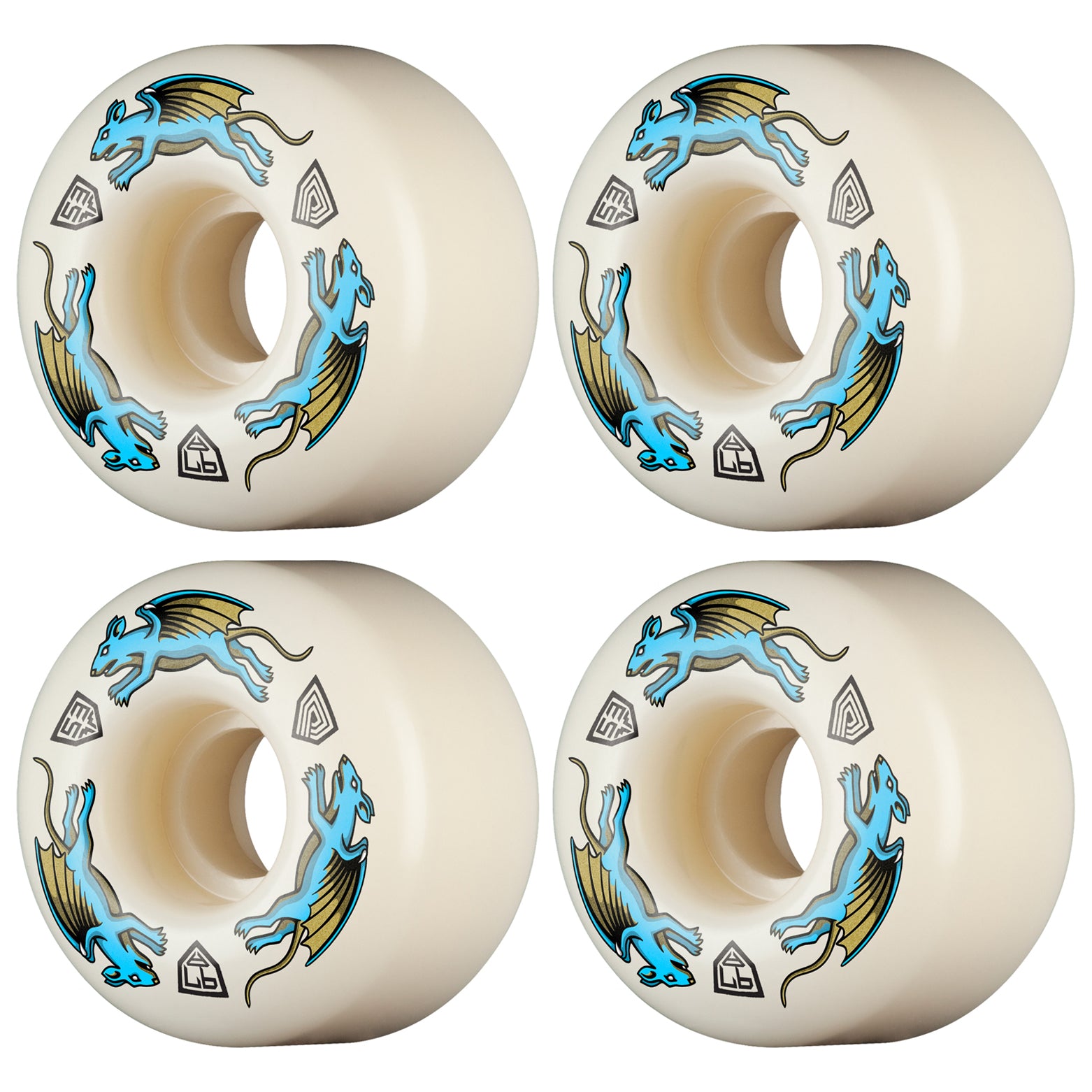 Powell Peralta Skateboard Wheels 53mm x 34mm Dragon Formula 97A AV4 Nano Rat Off White
