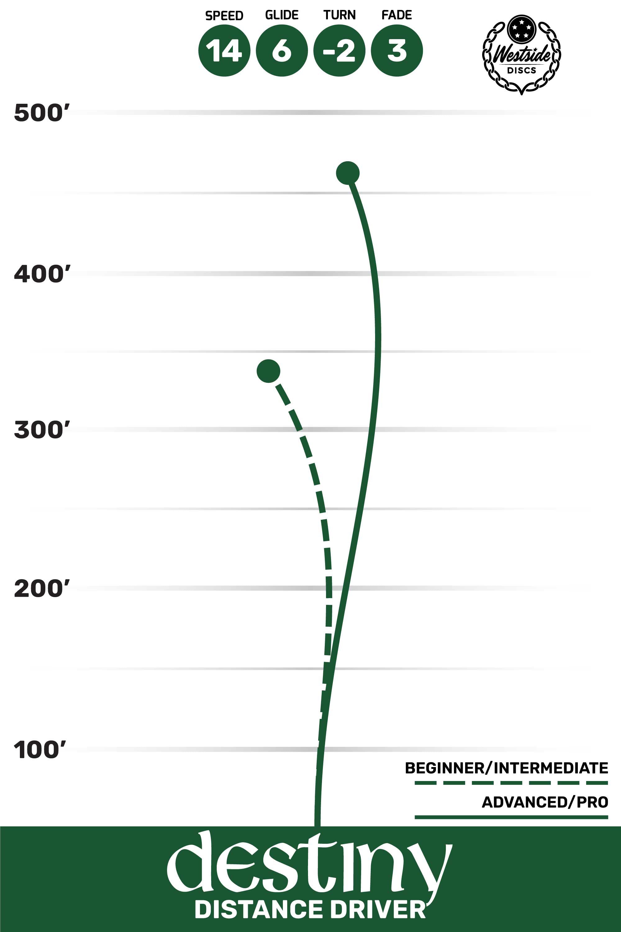 Two things are undeniable about this disc - speed and glide. This beauty really gets out there. For the higher arm speeds, a powered down throw will still get out to great distances. For the lower arm speeds, this will be your long range bomber. Everyone can find a way to throw the Destiny. You will just have to walk a long way to go pick it up.