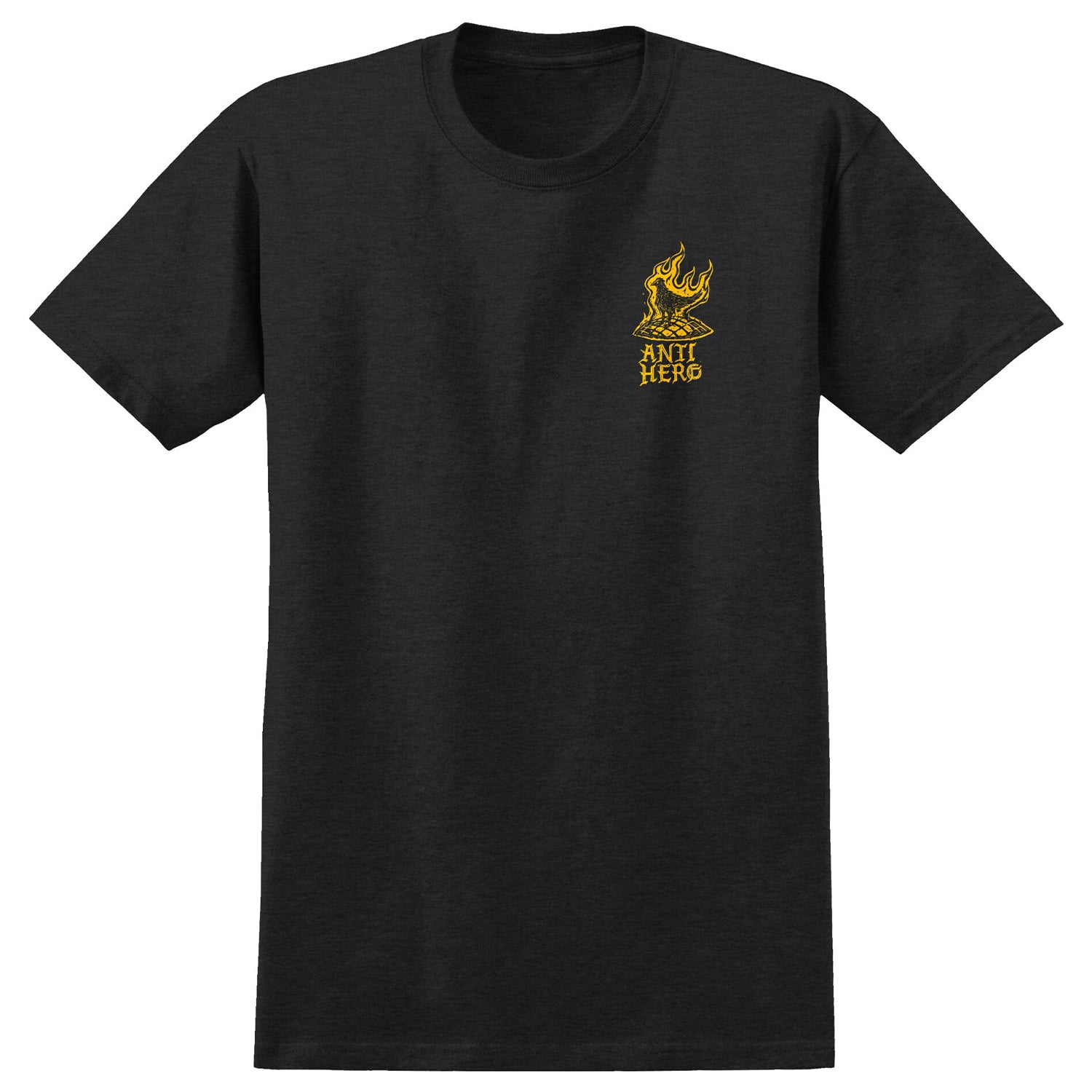 Fireside short sleeve t-shirt graphic from Anti Hero skateboards. Features small front print and large back print.
