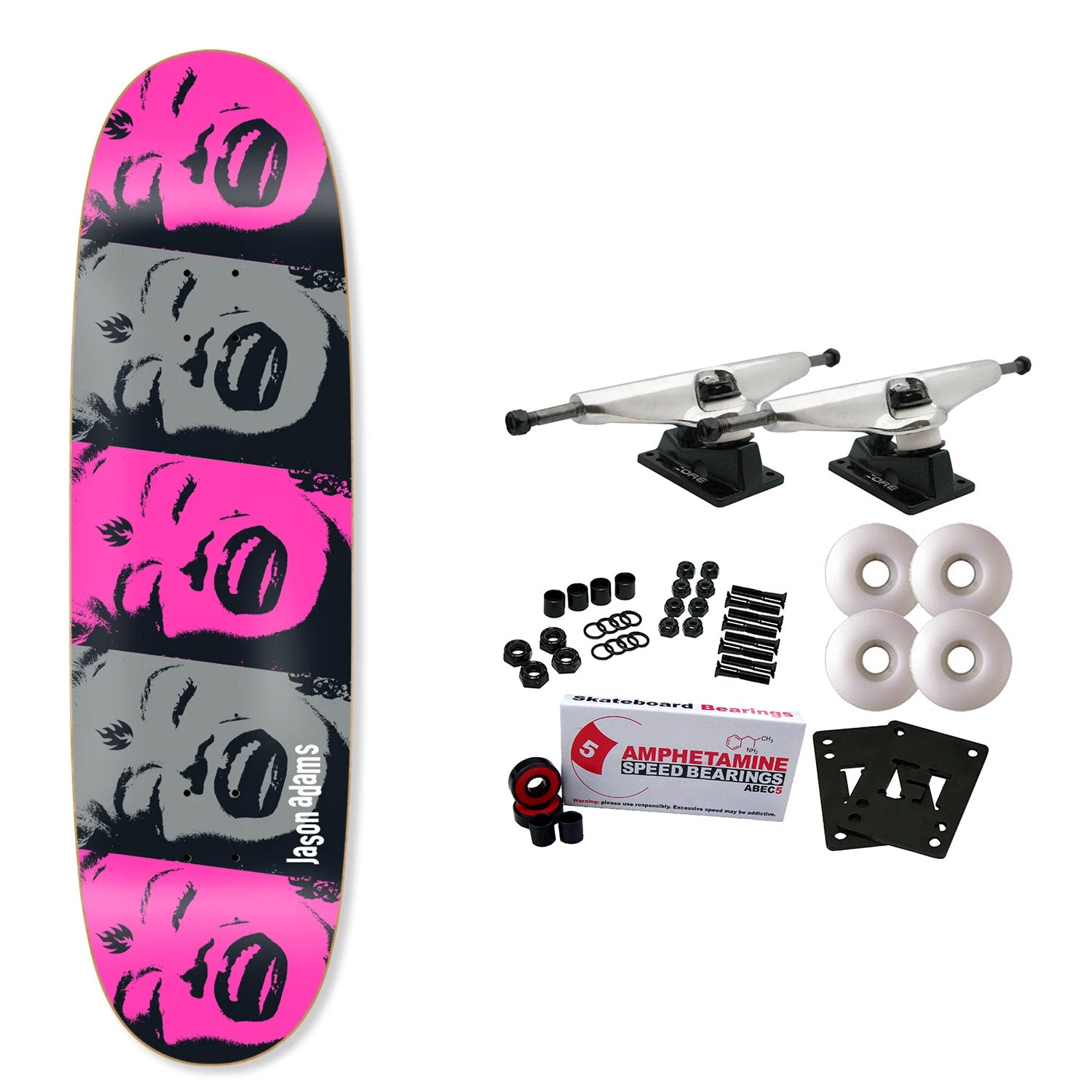 Assorted Top Stains. 9.0" x 32.2", 14.38" wheelbase. Custom 9.0" Egg Shape. 7 ply hardwood maple laminate. Comes with Core trucks, 58mm 97A wheels, Amp abec 5 bearings, Black Diamond Griptape, risers, and hardware. Core trucks are light weight and feature heavy duty aluminum with grade 8 steel kingpins and axles, as well as USA made bushings and pivot cups. 58mm 97A are the perfect wheels for both street and park skating. Like the name states, Amp bearings are stimulants for your wheels! Light synthetic oil, Delrin Crowns, and Rubber Serviceable Shields are a few of the things that makes these bearings one of the best Abec 5 rated bearings on the market. Arrives un-assembled which allows for customization and a feeling of accomplishment. Skaters love building their boards! Easy to assemble!