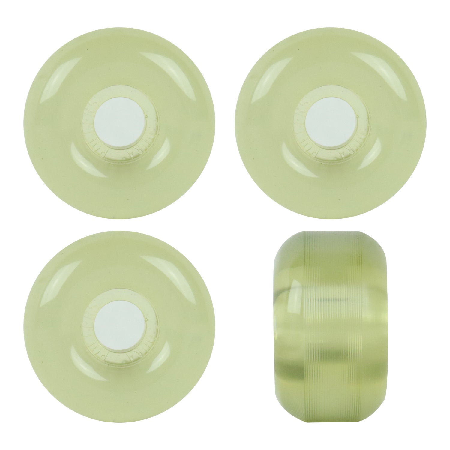 Get transparent urethane on a wheel slightly softer than standard. Includes a set of 4 wheels. 97A Duromter, measures 53mm x 32mm. These are perfect for both street and park skating.