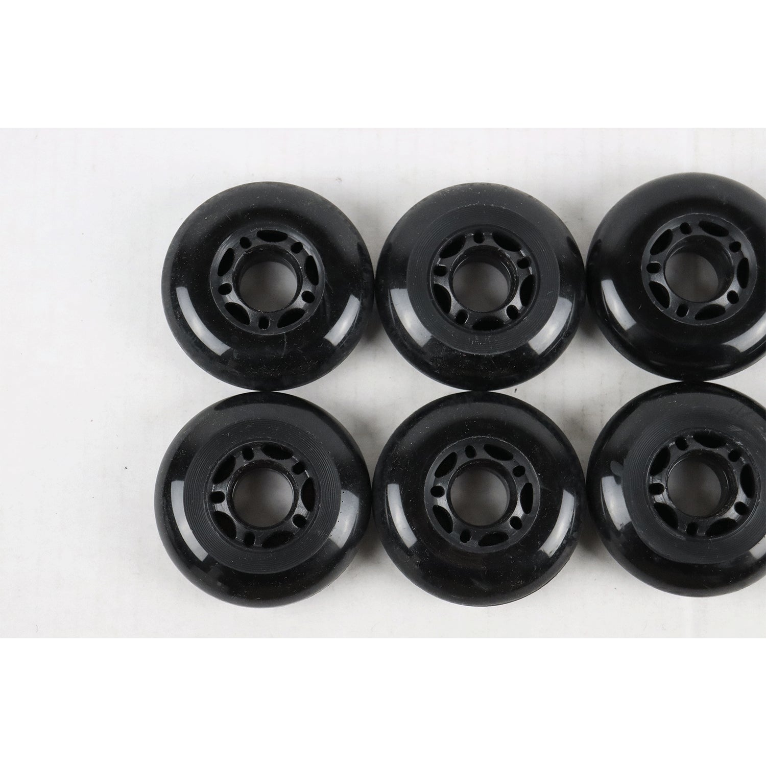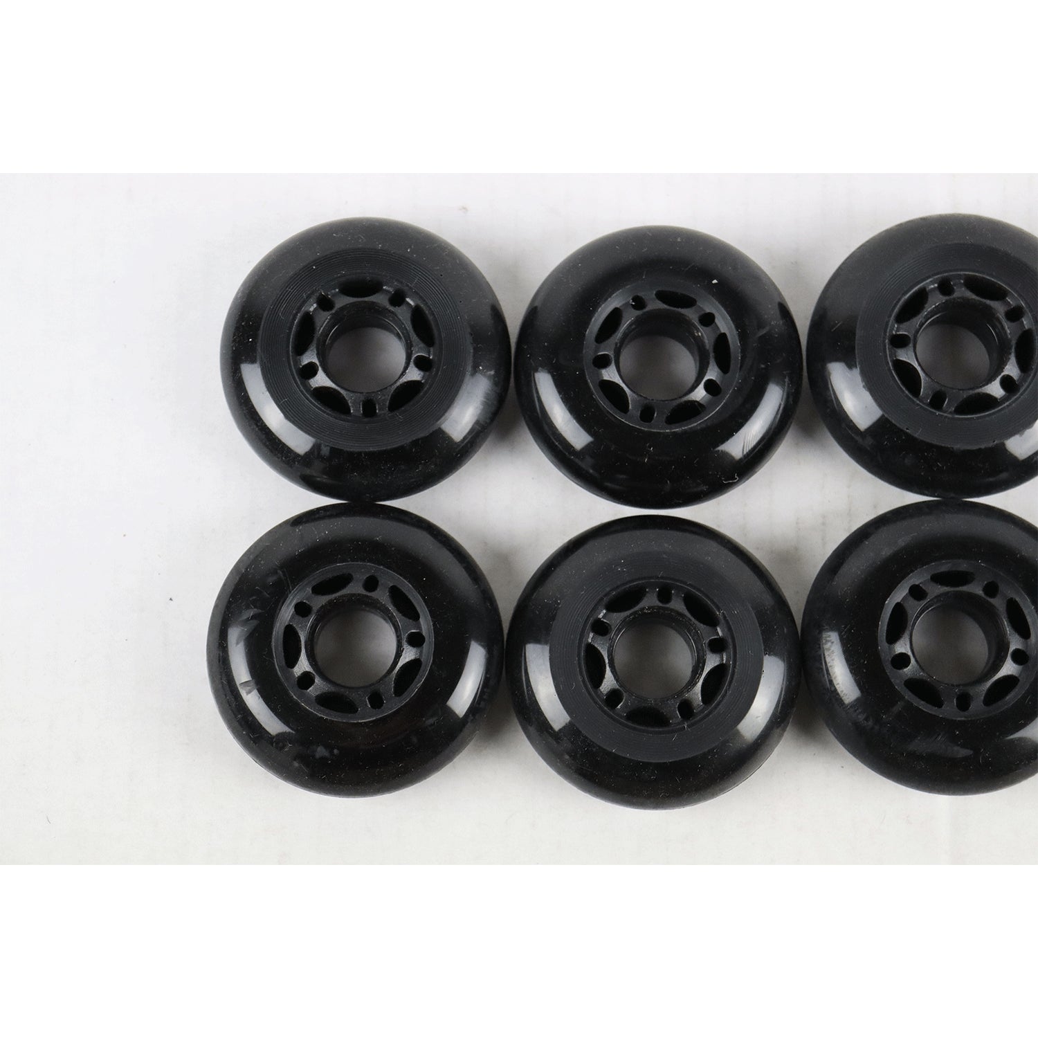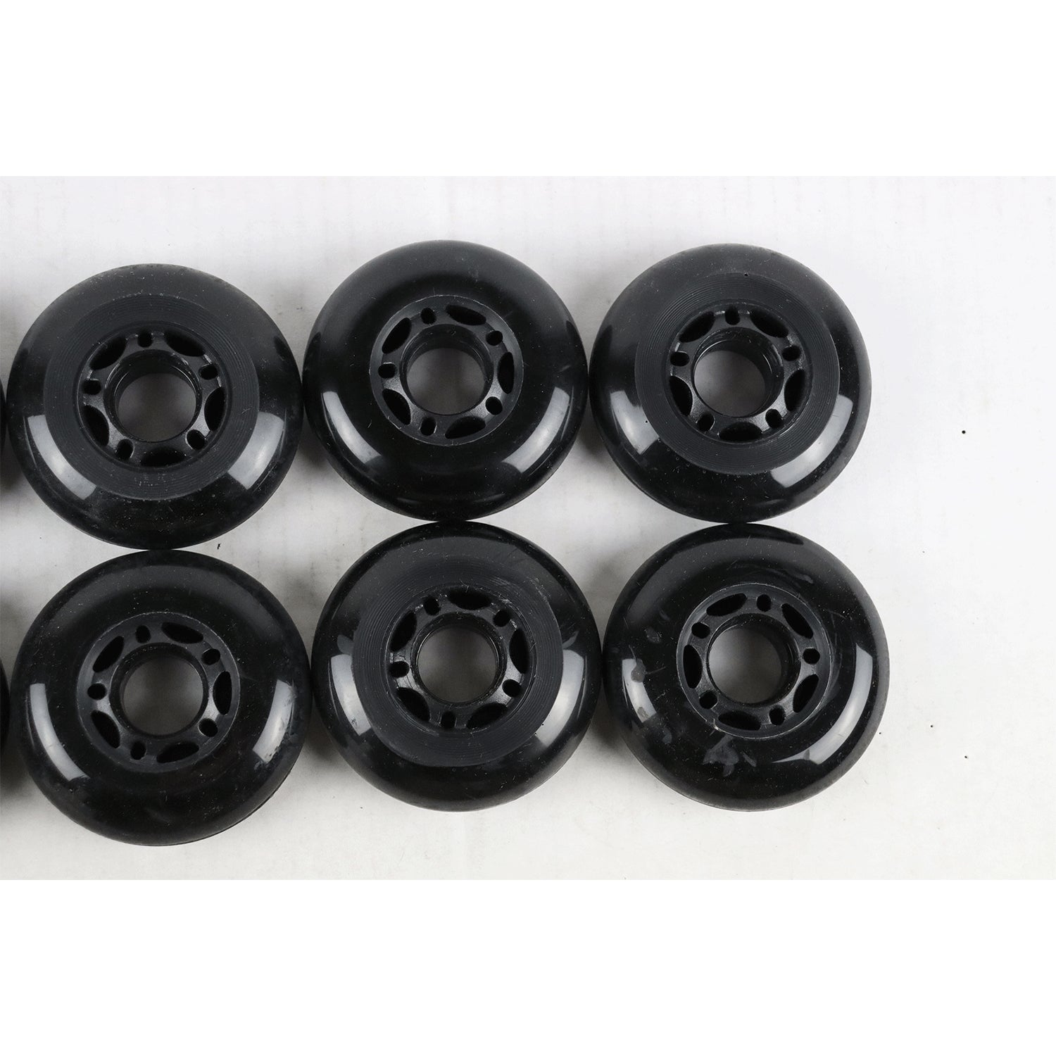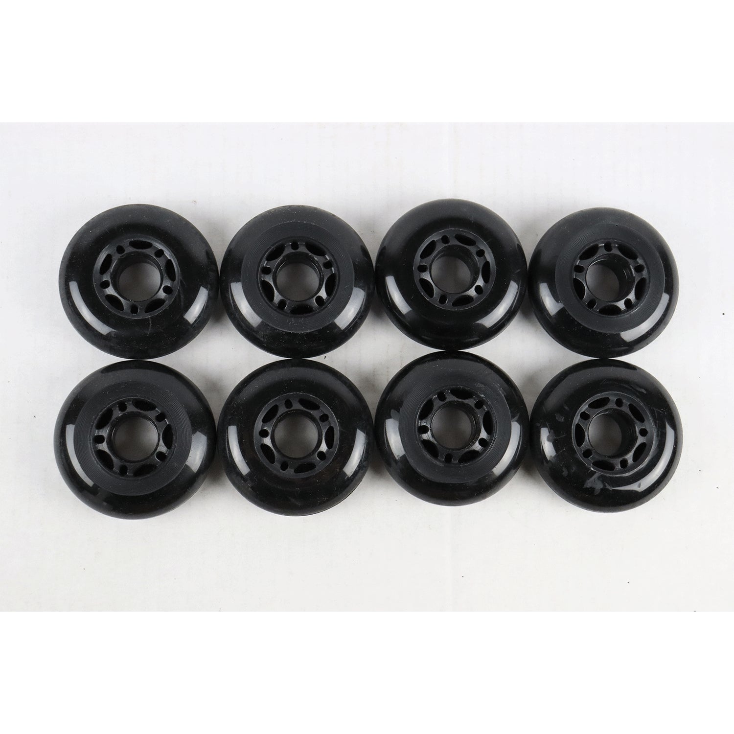 Blemished Inline Skate Wheels 72mm Black - 8-Pack. The wheels are slightly used and have some minor wear. Check all images before purchasing. Sale is final, non-refundable.