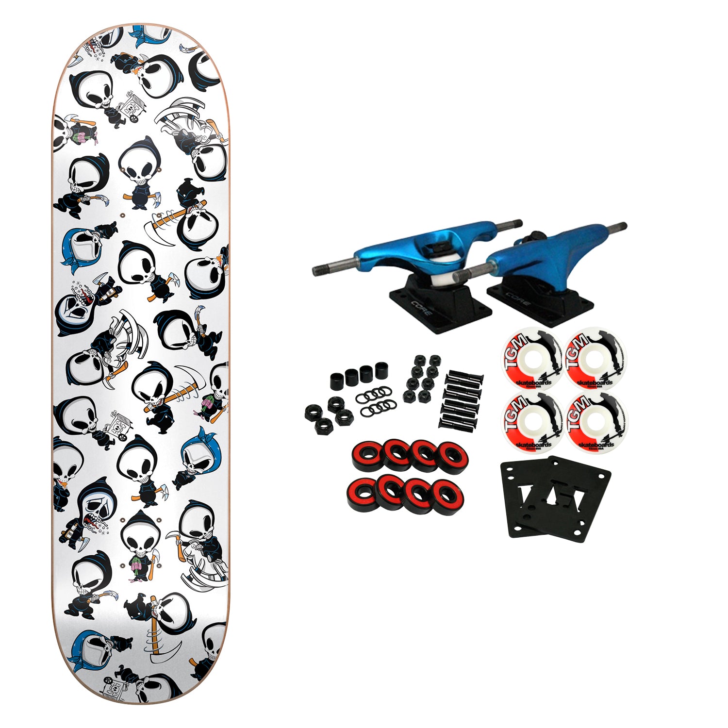 7-ply construction Epoxy Resin Glue, Individually Pressed. Measures 7.75" x 31.2" with a 13.9" wheelbase and Full Concave. Comes with Core trucks, 52mm TGM logo wheels, Amp abec 5 bearings, Black Diamond Griptape, risers, and hardware. Core trucks are light weight and feature heavy duty aluminum with grade 8 steel kingpins and axles, as well as USA made bushings and pivot cups. 52mm 99A are the perfect wheels for both street and park skating. Like the name states, Amp bearings are stimulants for your wheels! Light synthetic oil, Delrin Crowns, and Rubber Serviceable Shields are a few of the things that makes these bearings one of the best Abec 5 rated bearings on the market. Arrives un-assembled which allows for customization and a feeling of accomplishment. Skaters love building their boards! Easy to assemble!