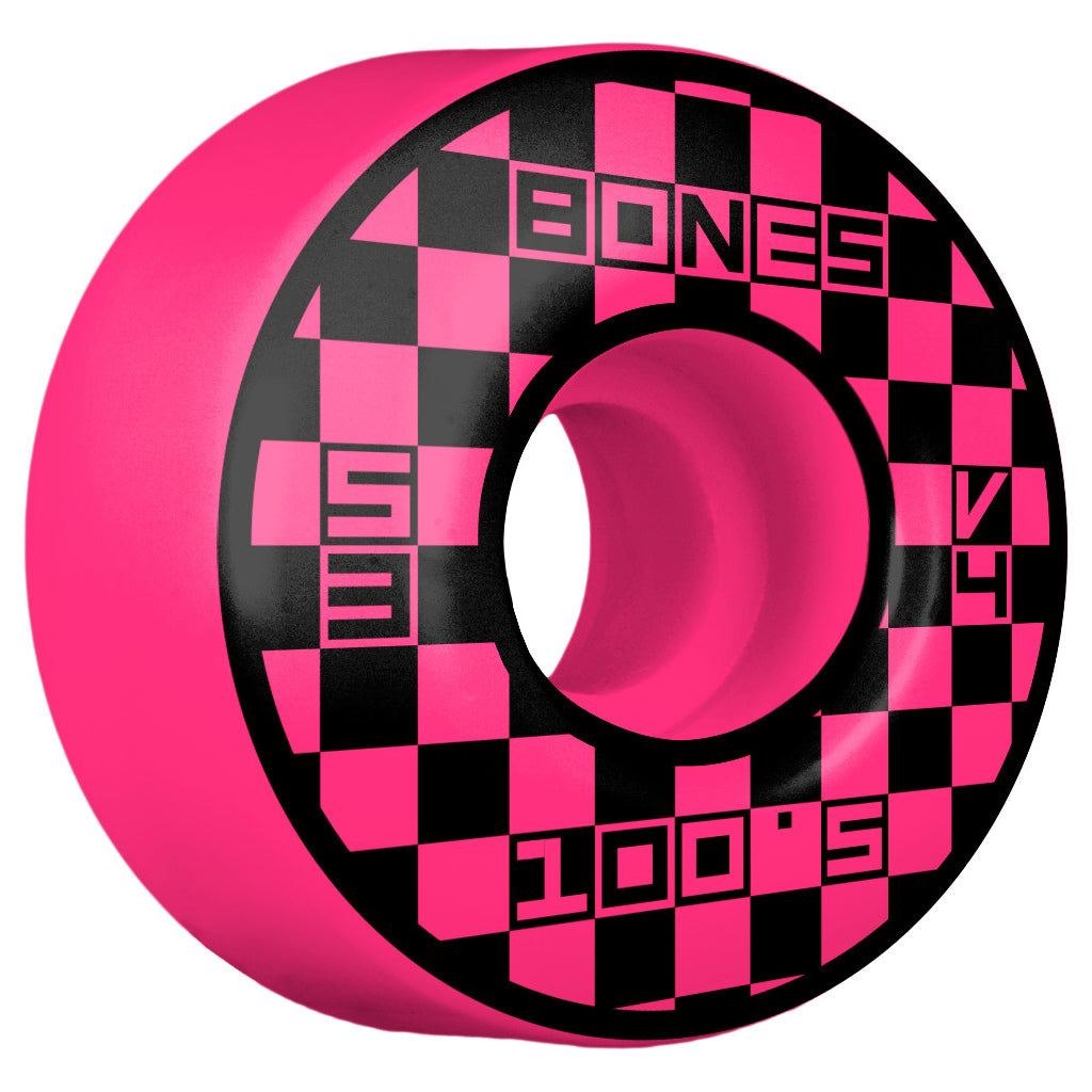 Bones Skateboard Wheels 100's 53mm 100A Block Party Pink V4 Wide Shape