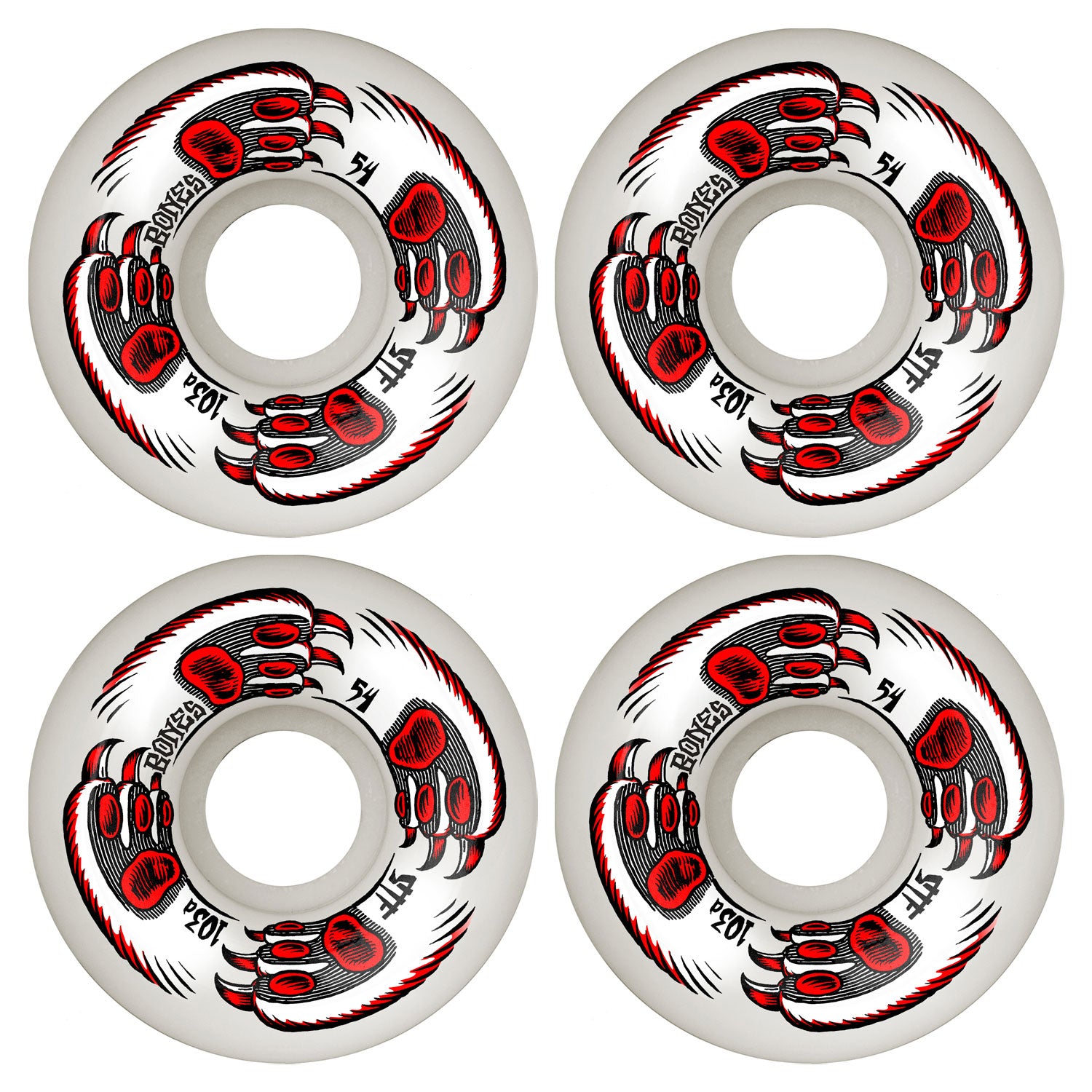 Bones Skateboard Wheels 54mm Kitty Twister V5 Sidecut STF 103A White