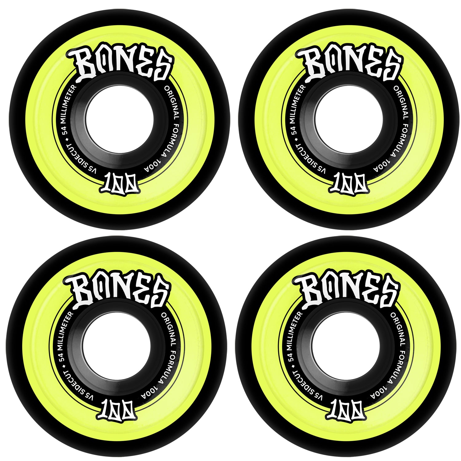 These Bones wheels feature the V5 Sidecut shape, poured with the original 100A formula. These Wheels Measure 54mm x 31mm. The V5 sidecut shape has sidecut walls designed for more stability, less drag, and longer grinds.