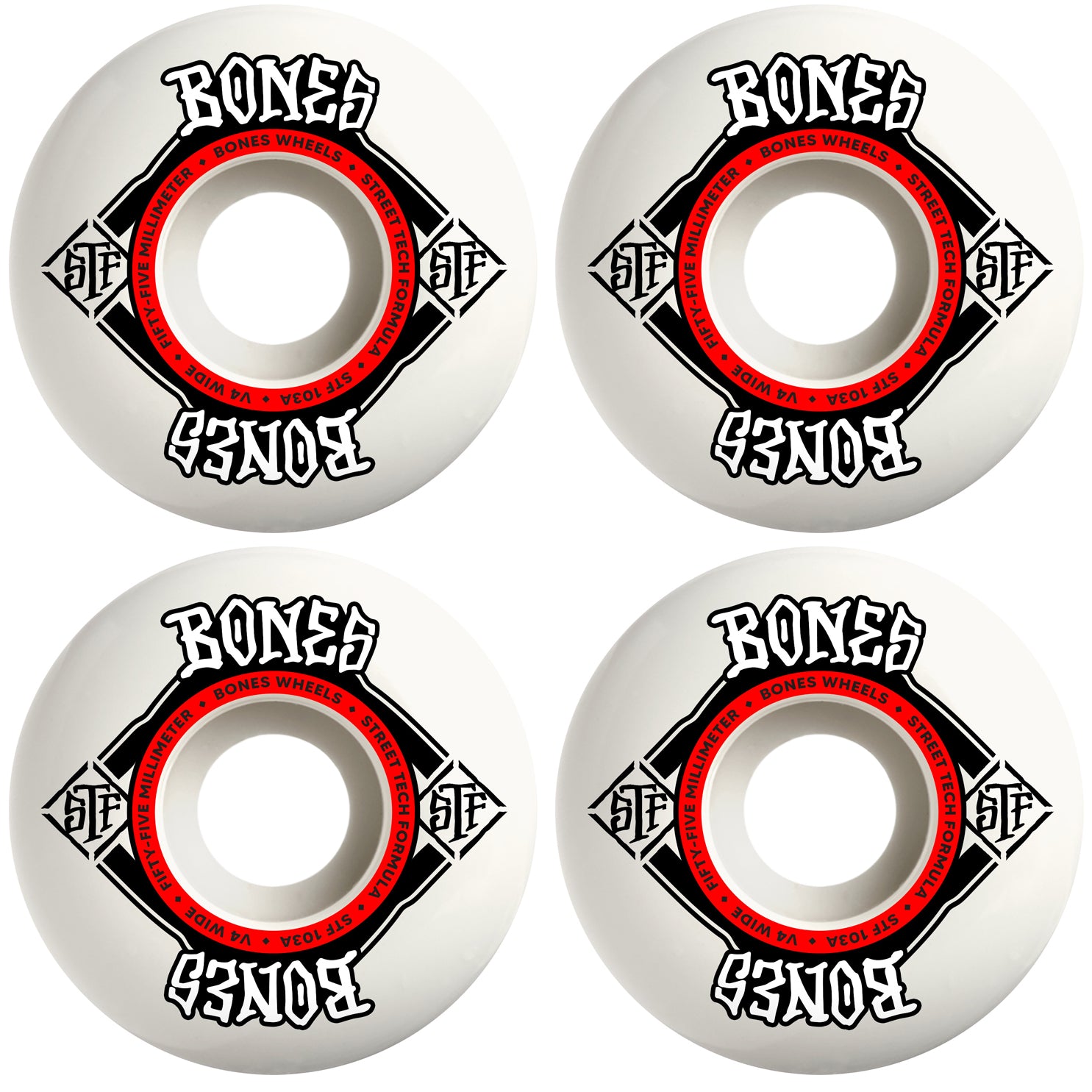 Bones Skateboard Wheels 55mm STF V4 Wide 103A White