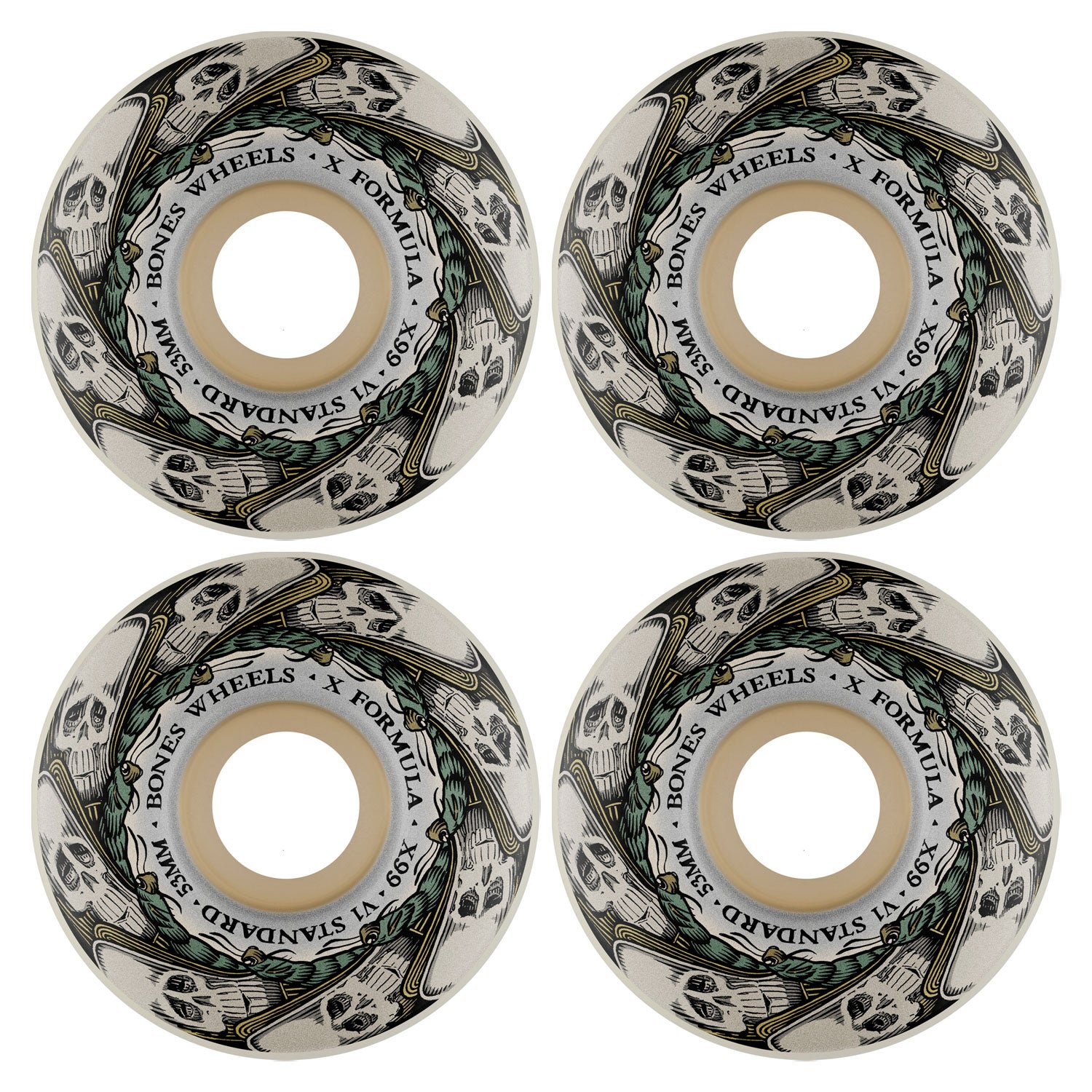 Bones Skateboard Wheels with Bronson Pro G3 Bearings X-Formula 53mm 99A V1