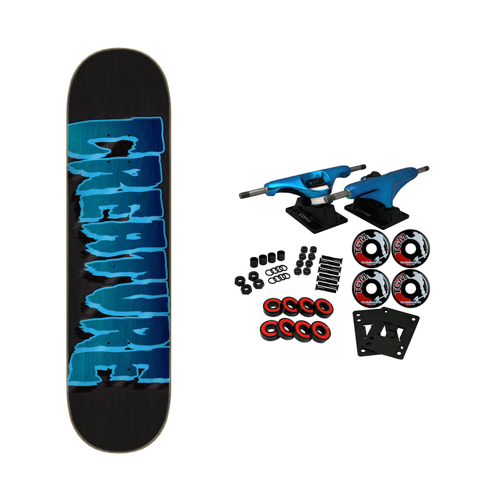 7 ply North American Maple pressed individually using epoxy making a strong, responsive deck with long lasting pop and consistent concave and kick. Measures 8.0" x 31.5" with a 14.1" wheelbase. Comes with Core trucks, 52mm TGM logo wheels, Amp abec 5 bearings, Black Diamond Griptape, risers, and hardware. Core trucks are light weight and feature heavy duty aluminum with grade 8 steel kingpins and axles, as well as USA made bushings and pivot cups. 52mm 99A are the perfect wheels for both street and park skating. Like the name states, Amp bearings are stimulants for your wheels! Light synthetic oil, Delrin Crowns, and Rubber Serviceable Shields are a few of the things that makes these bearings one of the best Abec 5 rated bearings on the market. Arrives un-assembled which allows for customization and a feeling of accomplishment. Skaters love building their boards! Easy to assemble!