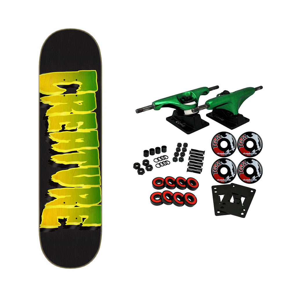 7 ply North American Maple pressed individually using epoxy making a strong, responsive deck with long lasting pop and consistent concave and kick. Measures 8.25" x 31.8" with a 14.2" wheelbase. Comes with Core trucks, 52mm TGM logo wheels, Amp abec 5 bearings, Black Diamond Griptape, risers, and hardware. Core trucks are light weight and feature heavy duty aluminum with grade 8 steel kingpins and axles, as well as USA made bushings and pivot cups. 52mm 99A are the perfect wheels for both street and park skating. Like the name states, Amp bearings are stimulants for your wheels! Light synthetic oil, Delrin Crowns, and Rubber Serviceable Shields are a few of the things that makes these bearings one of the best Abec 5 rated bearings on the market. Arrives un-assembled which allows for customization and a feeling of accomplishment. Skaters love building their boards! Easy to assemble!