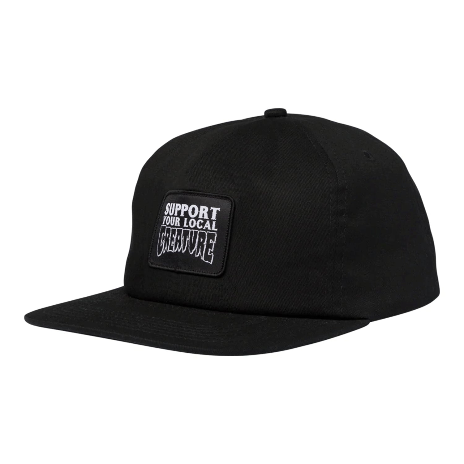Unleash your inner fiend in the latest hats and headwear from Creature Skateboards. The Support Patch men's mid profile 5 panel unstructured snapback hat features woven label Support Patch with merrowed edges, loop label at rear snapback adjuster and custom interior taping. Creature Skateboards - Lurk with us.
