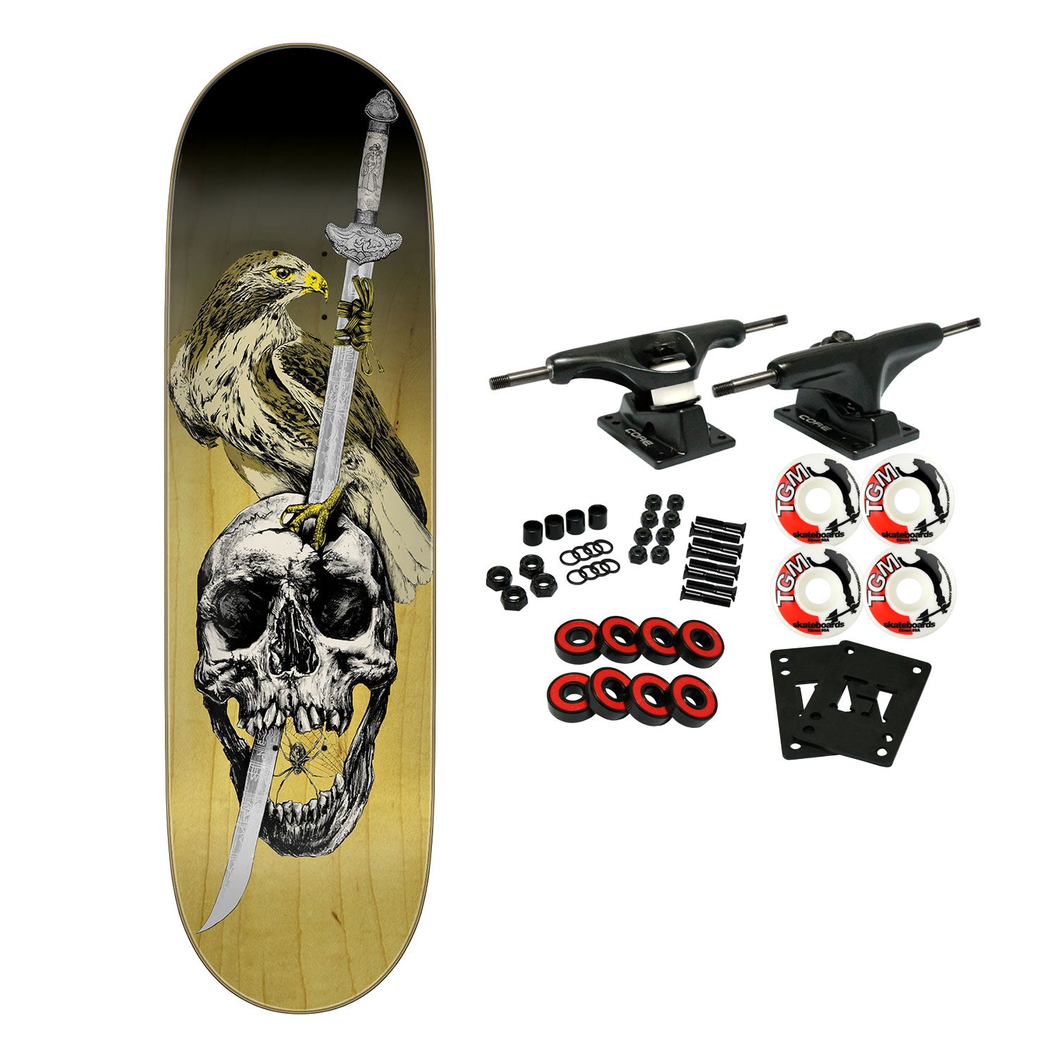 Choose your blades wisely. The graphics in this series are by Raygen Phillips. Provost: 8.8 x 31.95 w/ 14.25" WB (Stumps shape). Comes with Core trucks, 52mm TGM logo wheels, Amp abec 5 bearings, Black Diamond Griptape, risers, and hardware. Core trucks are light weight and feature heavy duty aluminum with grade 8 steel kingpins and axles, as well as USA made bushings and pivot cups. 52mm 99A are the perfect wheels for both street and park skating. Like the name states, Amp bearings are stimulants for your wheels! Light synthetic oil, Delrin Crowns, and Rubber Serviceable Shields are a few of the things that makes these bearings one of the best Abec 5 rated bearings on the market. Arrives un-assembled which allows for customization and a feeling of accomplishment. Skaters love building their boards! Easy to assemble!