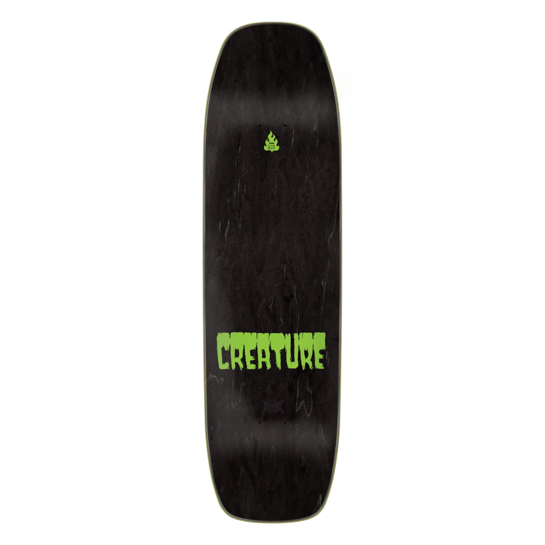We are proud to celebrate 20 years since the ghastly resurrection of Creature Skateboards with the first Pro Series offered originally in 2005. Grab a piece of Creature history with the 'Feeding Time XX' re-issue Pro Series, now recolored with an eerie foil underpass and updated on the OG Overlordz signature shapes. Navarrette Feeding Time XX - 9" x 32.82" - 15.25" WB. 7 ply North American Maple pressed individually using epoxy - making a strong, responsive deck with long lasting pop and consistent concave and kick. ATV is a universal medium-depth concave with symmetrical nose and tail kick that performs well in all terrains on a wide variety of shapes - for anybody, anywhere.