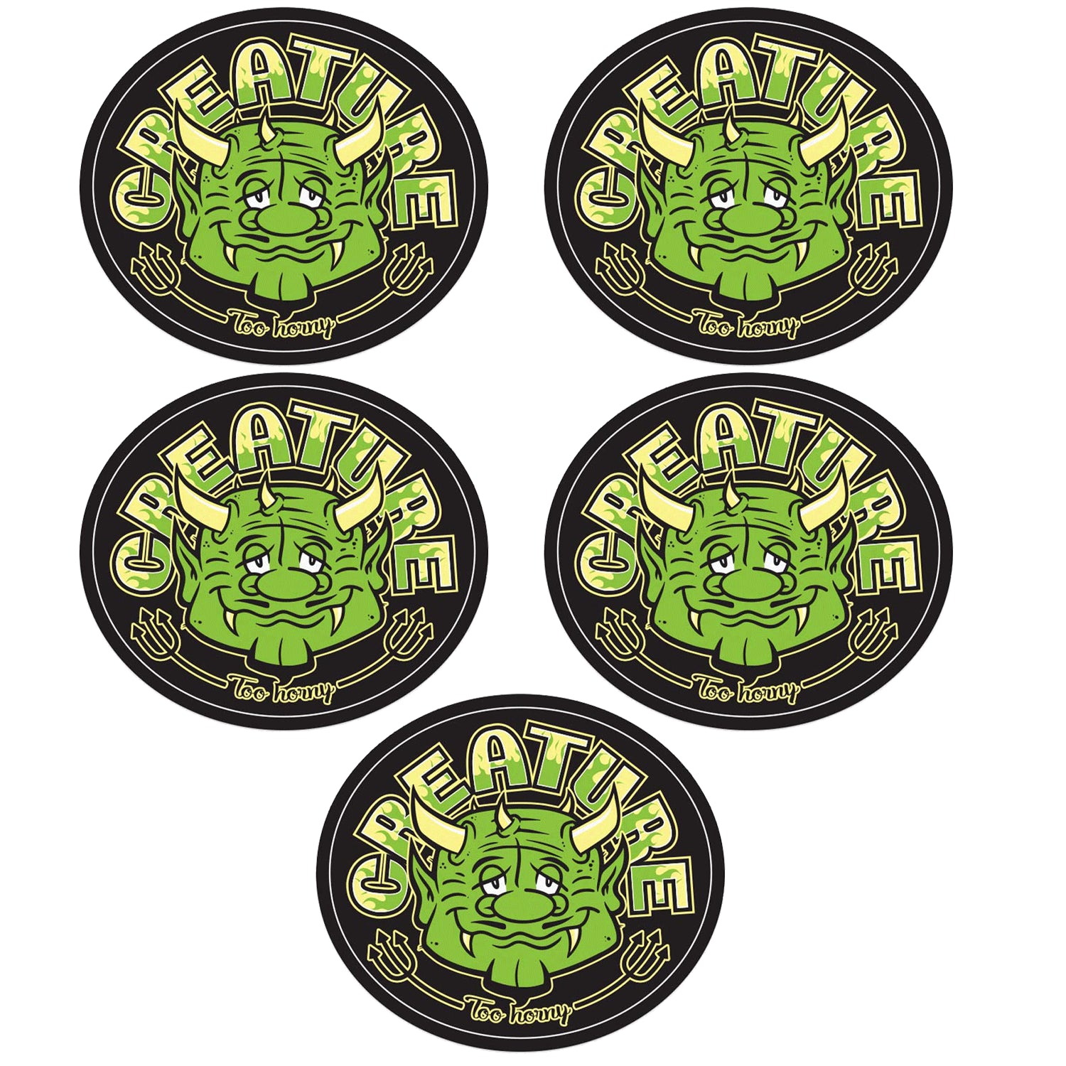 Creature Skateboard Vinyl Stickers Too Horny Green 3.5" x 3" 5-Pack