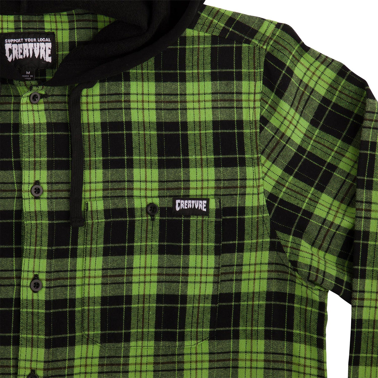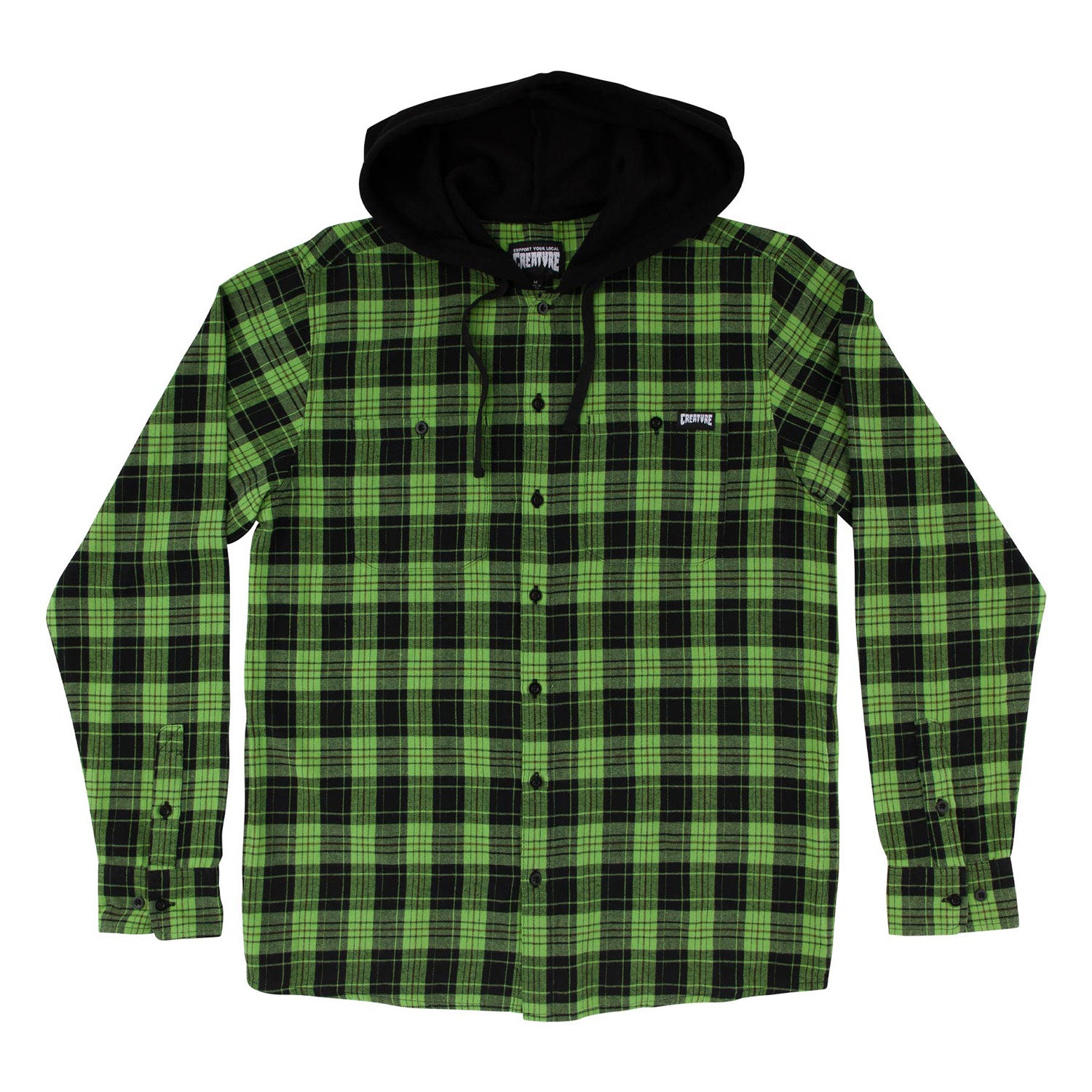 Support the horde in the latest t-shirts and apparel from Creature Skateboards. The Bat Relic custom brushed hooded flannel long-sleeve top features Creature Bat Relic embroidery on back, hood drawstring, side pockets and woven label at chest pocket.