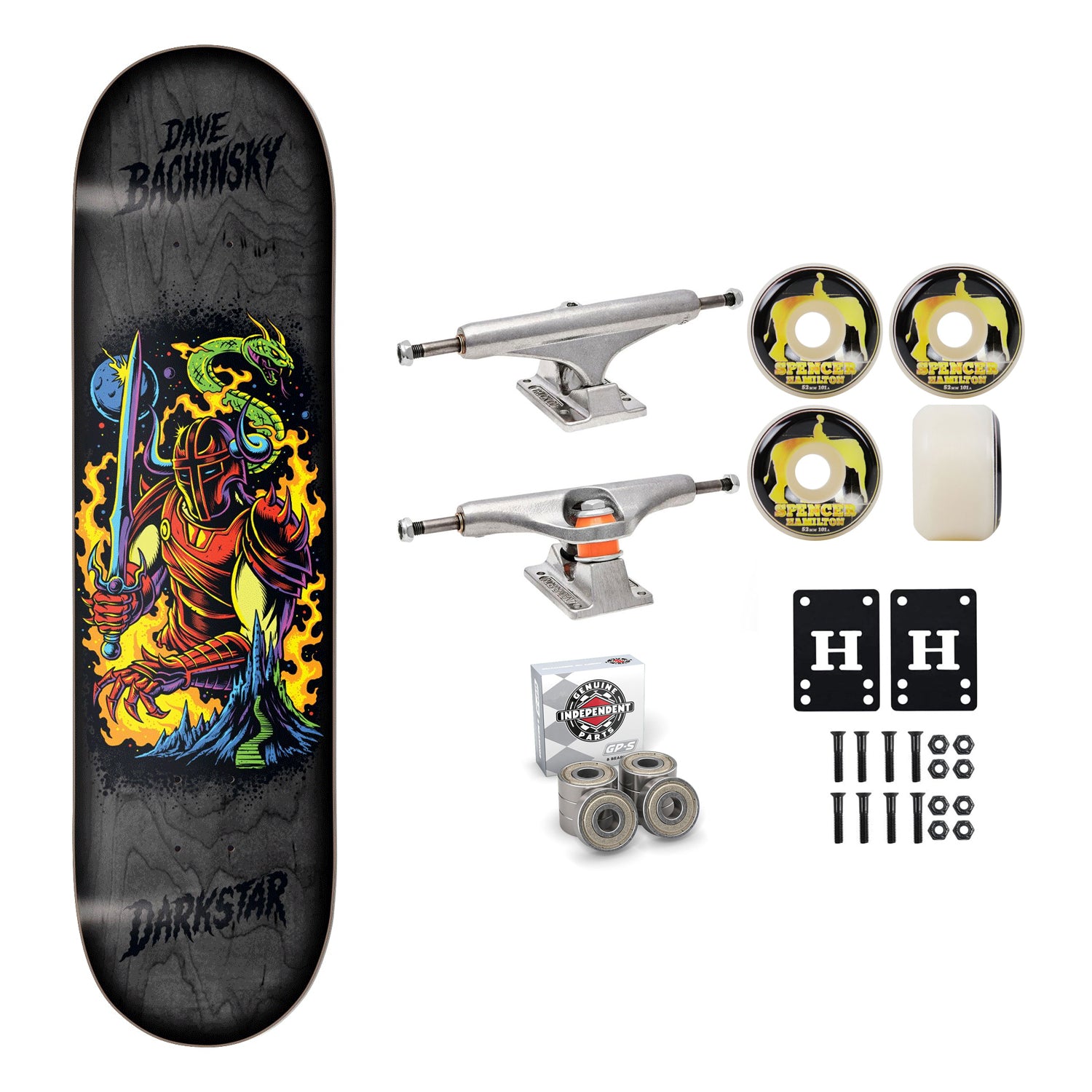 Includes hand selected components to make a premium complete that even the pros would be proud of. Top tier parts from leaders in the industry. Includes a Darkstar Deck, Independent Trucks, Satori Wheels, Independent GP-S Bearings, Black Diamond Griptape, 1" Hardware and Risers.