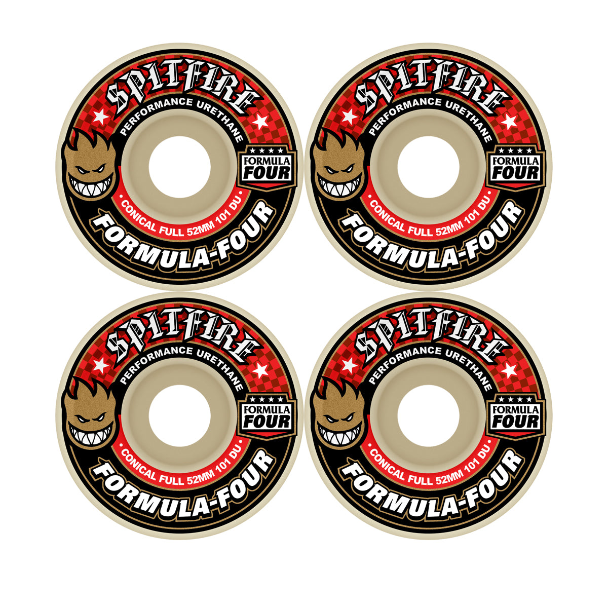 Brand New, 7-Ply Canadian Maple DEATHWISH Skateboard Deck. Thunder Hollow Lights. Less weight – more strength, premium grade hollow kingpins, extra strong reinforced hollow axles, custom forged aluminum baseplates, lightning quick response & control. Hollow Kingpin. Hollow Axle. Black Bushings. Thunder 147 = 8.0" Axle. Includes 2 Trucks. Spitfire Formula Four Conical Full 101A. Formulated for a harder, faster ride. Unmatched flatspot resistance. Smooth anti-stick slide. More speed and control. 100% true performance urethane. A wider version of the conical shape. Wide riding surface. Cut in sidewalls to decrease weight. A solid, controllable shape for all terrains. 52mm x 32.5mm, 101A.