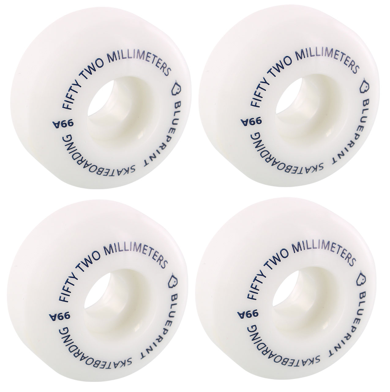 WHEELS: Blueprint Classic Shape Skateboard Wheels. 99A Hardness, perfect for street and park skating. 52mm in diameter.