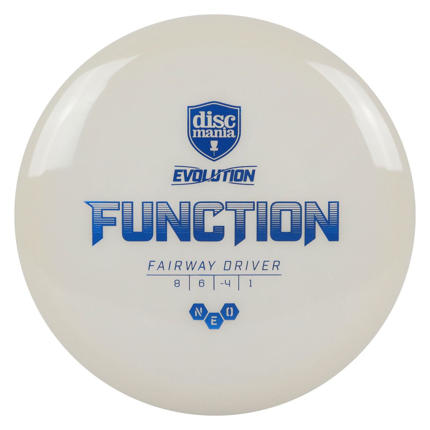 Function is an easy to throw fairway driver that offers the most understable flight path of any Discmania disc produced to date. Those that enjoy the performance of the Essence but seek something just a bit flipper for their game are going to fall in love with this one right away. The Function is engineered for players with lower level arm speeds, beginners/amateurs, and those that enjoy the flight of an understandable fairway driver that executes turning shots quickly and easily. Neo - Semi-translucent, premium plastic. Not only great looking but also the most durable and rigid Evolution line plastic! Still has some flex to it, and thanks to the special finish it offers an awesome grip.