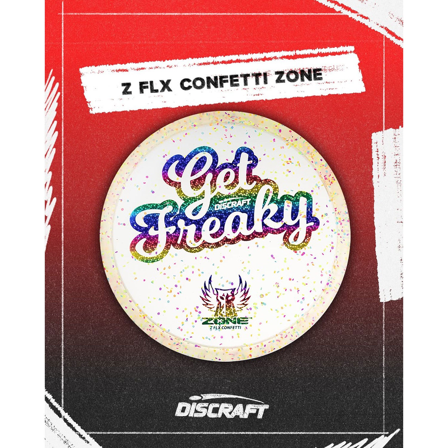 The Z FLX Confetti Zone upgrades Discraft’s most trusted approach disc with enhanced durability, flexibility, and a bold new look. Each disc is packed with vibrant confetti-like pieces, making every disc unique. Whether you're parking upshots or scrambling out of trouble, the Brodie Smith Z FLX Confetti Zone delivers elite performance with extra flair!