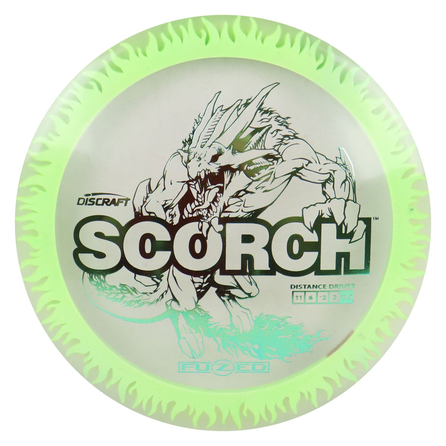 Discraft Disc Golf FuZed Line Scorch with Flame Pattern Distance Driver 11/6/-2/2 Clear with Lime Flame/Olive 173-174g