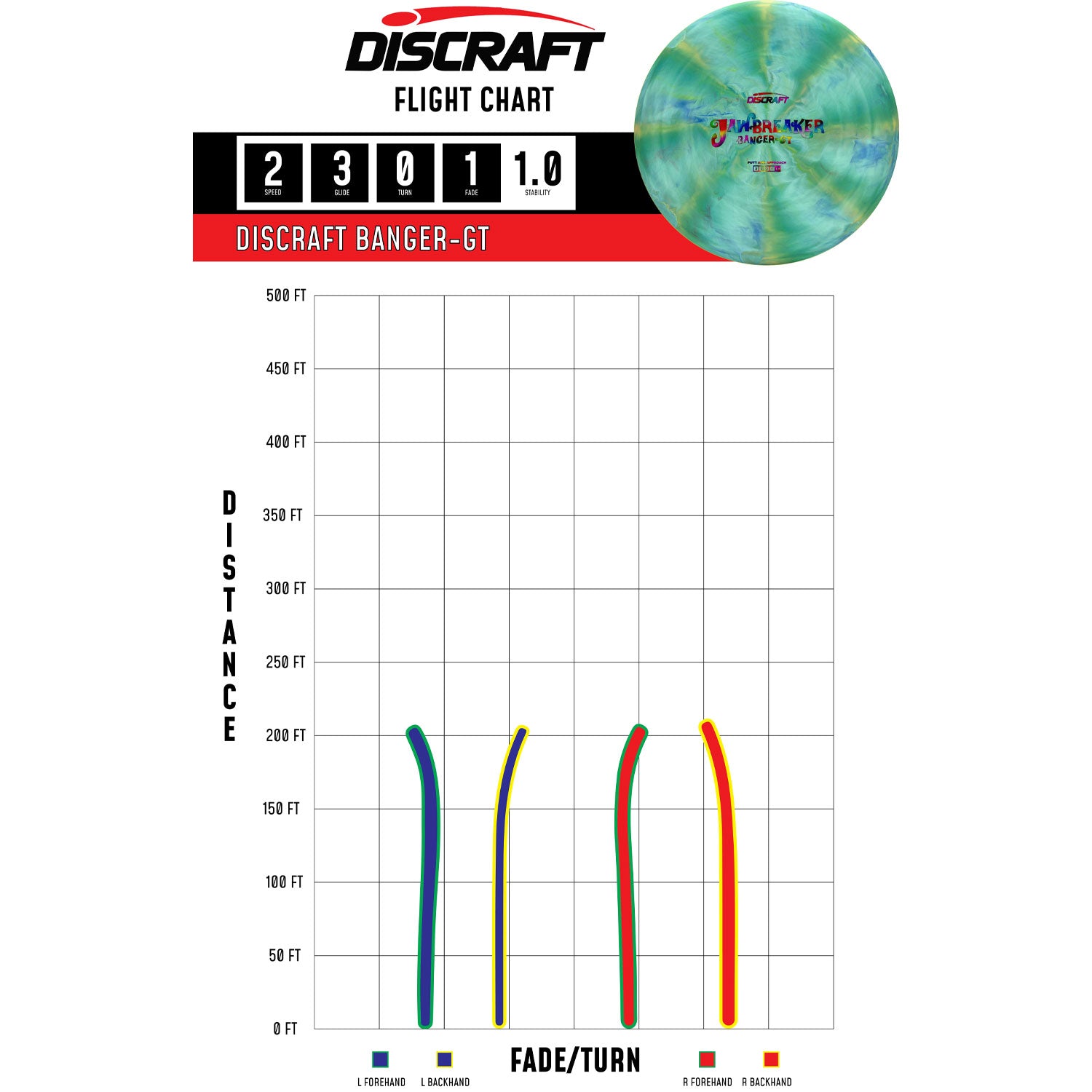 The Banger GT stands out as a unique beaded putter option with its pronounced groove top creating a circular indent around the flight plate giving players added grip and consistent releases. The Banger GT has a balanced straight flight on the greens and off the tee and unparalleled grip.
