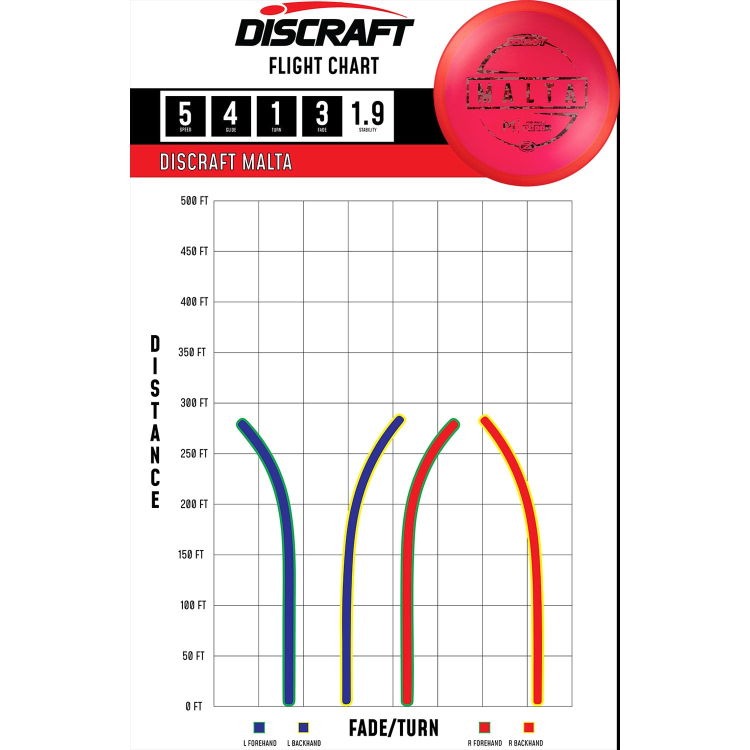 The Malta is an overstable midrange that has a strong and consistent finish and has been described as a longer Zone. The Malta is a great forehand midrange as its unique design helps it to resist high speed turn. These Maltas were ran in Jawbreaker plastic for the first time, providing the benefit of added grip.Â