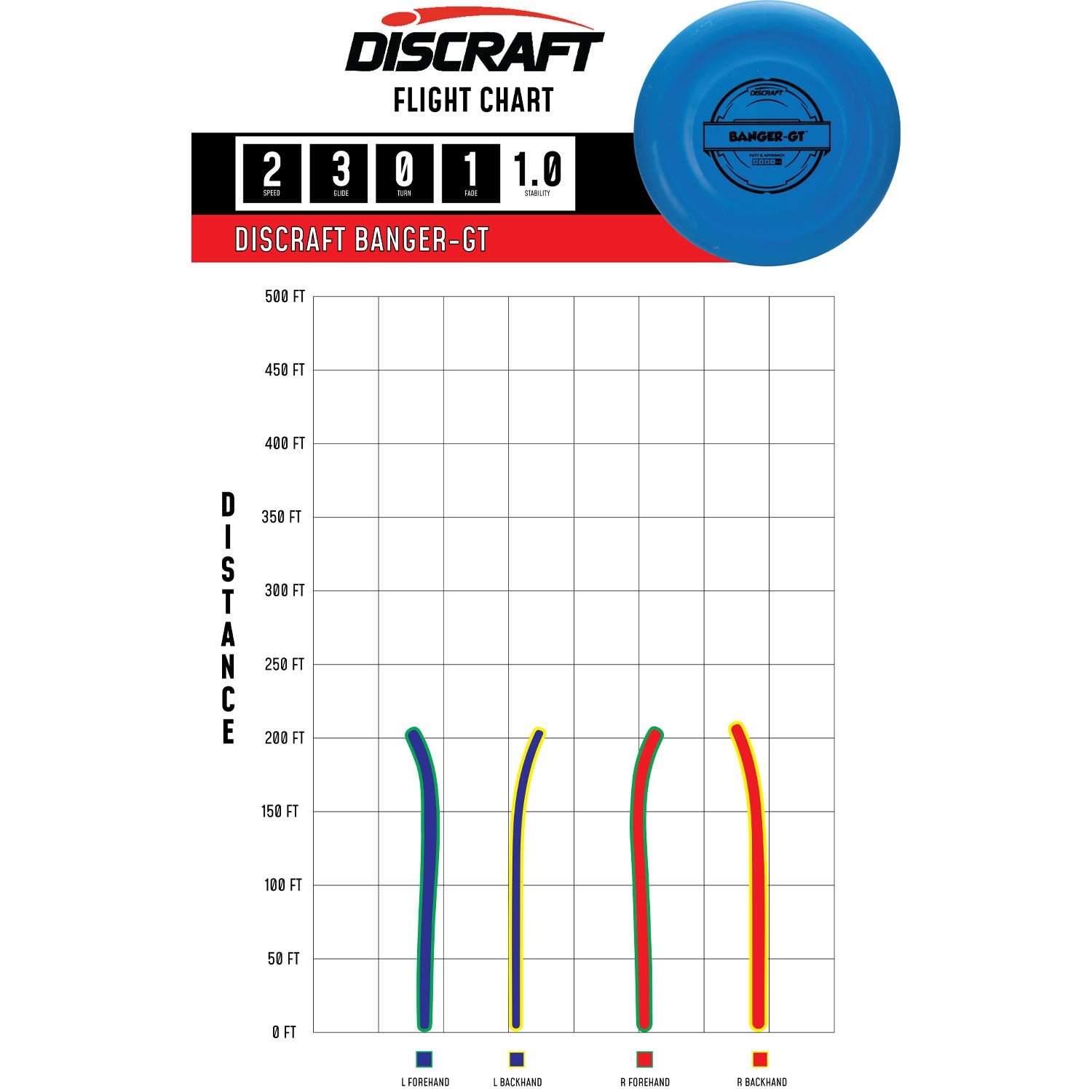 The Banger GT stands out as a unique beaded putter option with its pronounced groove top creating a circular indent around the flight plate giving players added grip and consistent releases. The Banger GT has a balanced straight flight on the greens and off the tee and unparalleled grip.
