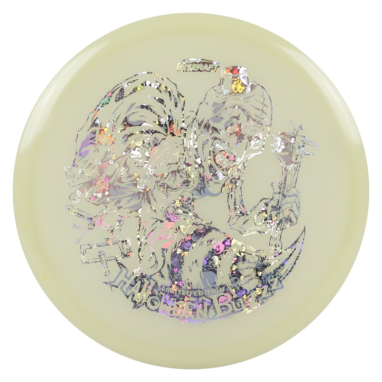 The Single-Foil Mega-Glo Halloween Buzzz turns darkness into its stage. Made from Discraft's popular Mega-Glo blend, this disc shines brighter and longer than any glow disc we’ve ever made. A minimalist single-foil stamp lets the unsettling clown artwork glow through the night—perfect for glow leagues or collectors seeking the most luminous Halloween Buzzz to date!