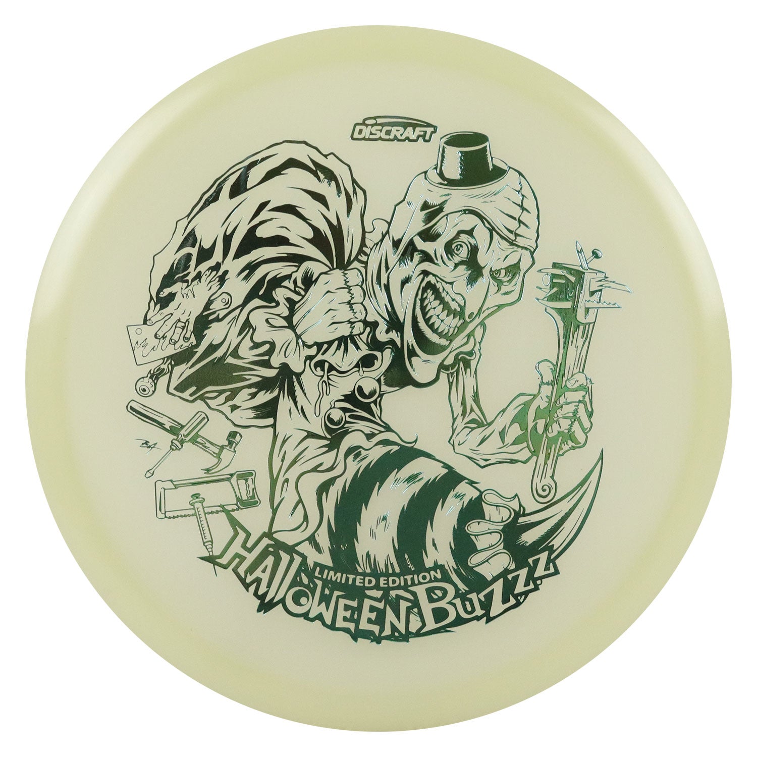 The Single-Foil Mega-Glo Halloween Buzzz turns darkness into its stage. Made from Discraft's popular Mega-Glo blend, this disc shines brighter and longer than any glow disc we’ve ever made. A minimalist single-foil stamp lets the unsettling clown artwork glow through the night—perfect for glow leagues or collectors seeking the most luminous Halloween Buzzz to date!