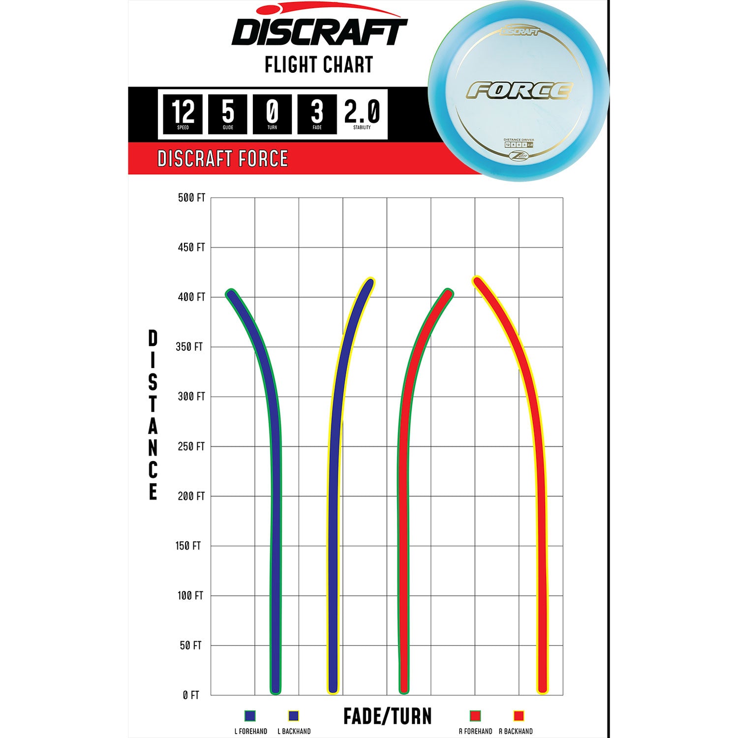 If you're throwing hard for maximum distance, reach for the high performance Force. This is Discraft's fastest overstable driver, with a wide rim and jaw-dropping glide that delivers a new level of distance potential. It's overstable and intended for experienced players who throw with power.