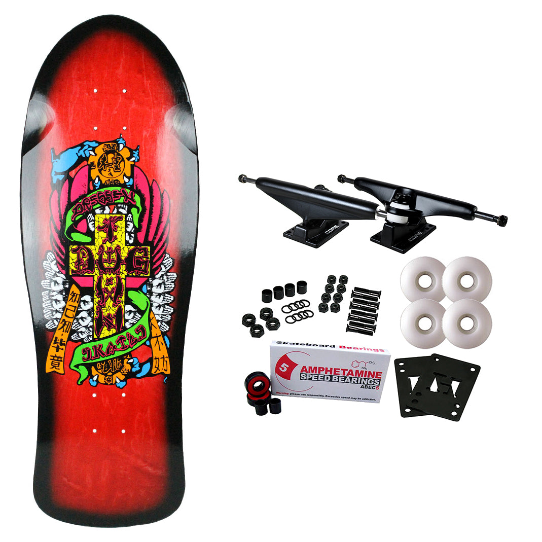 Please note -photo shows red, the Deck is actually orange. Dogtown Eric Dressen Reissue Deck. Features Front wheel Wells. Made at PS Stix. Comes with Core trucks, 58mm 97A wheels, Amp abec 5 bearings, Black Diamond Griptape, risers, and hardware. Core trucks are light weight and feature heavy duty aluminum with grade 8 steel kingpins and axles, as well as USA made bushings and pivot cups. 58mm 97A are the perfect wheels for both street and park skating. Like the name states, Amp bearings are stimulants for your wheels! Light synthetic oil, Delrin Crowns, and Rubber Serviceable Shields are a few of the things that makes these bearings one of the best Abec 5 rated bearings on the market. Arrives un-assembled which allows for customization and a feeling of accomplishment. Skaters love building their boards! Easy to assemble!