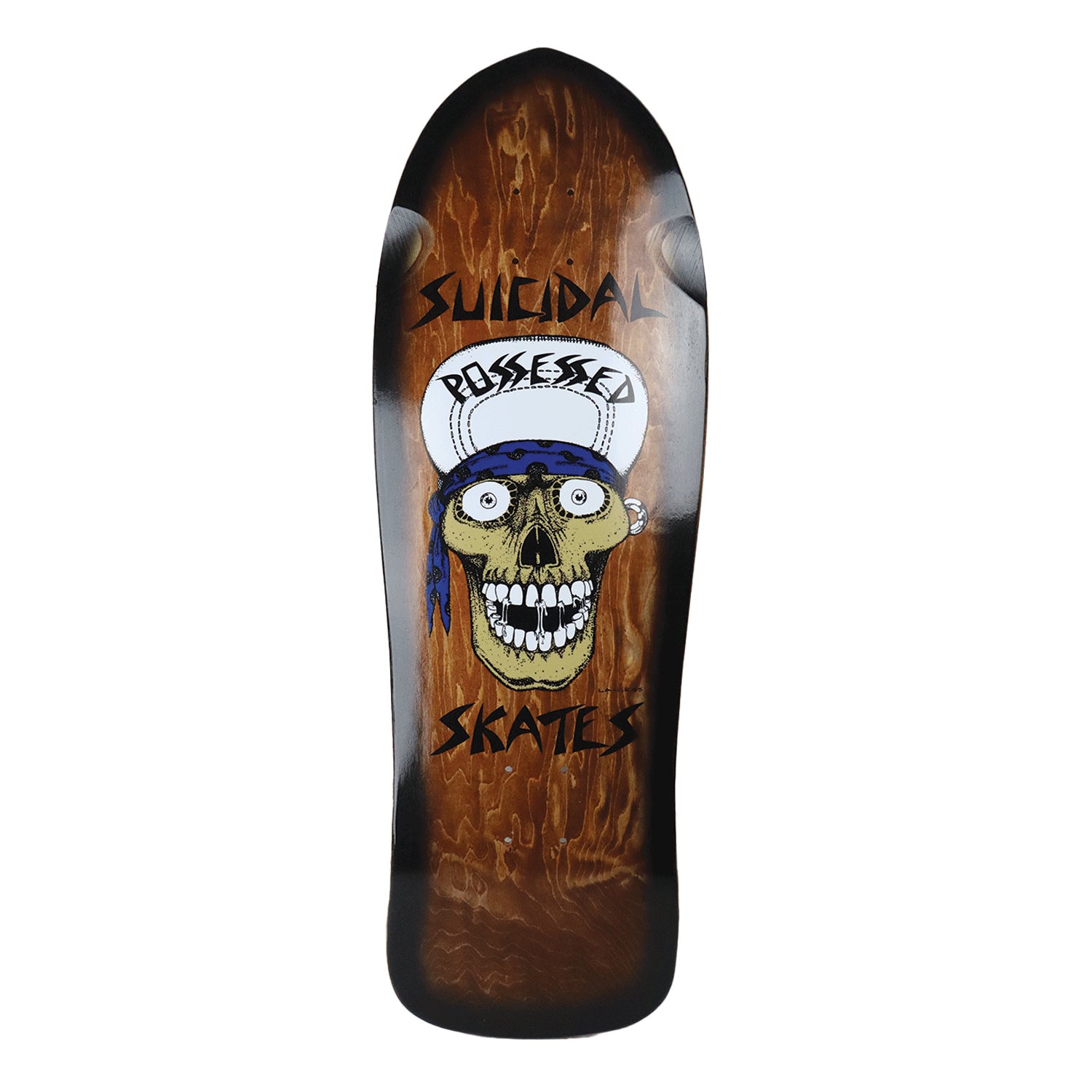 Suicidal Skates Punk Skull Reissue, Made at PS Stix. Measures 10.125" x 30.825" with a 15" wheelbase.