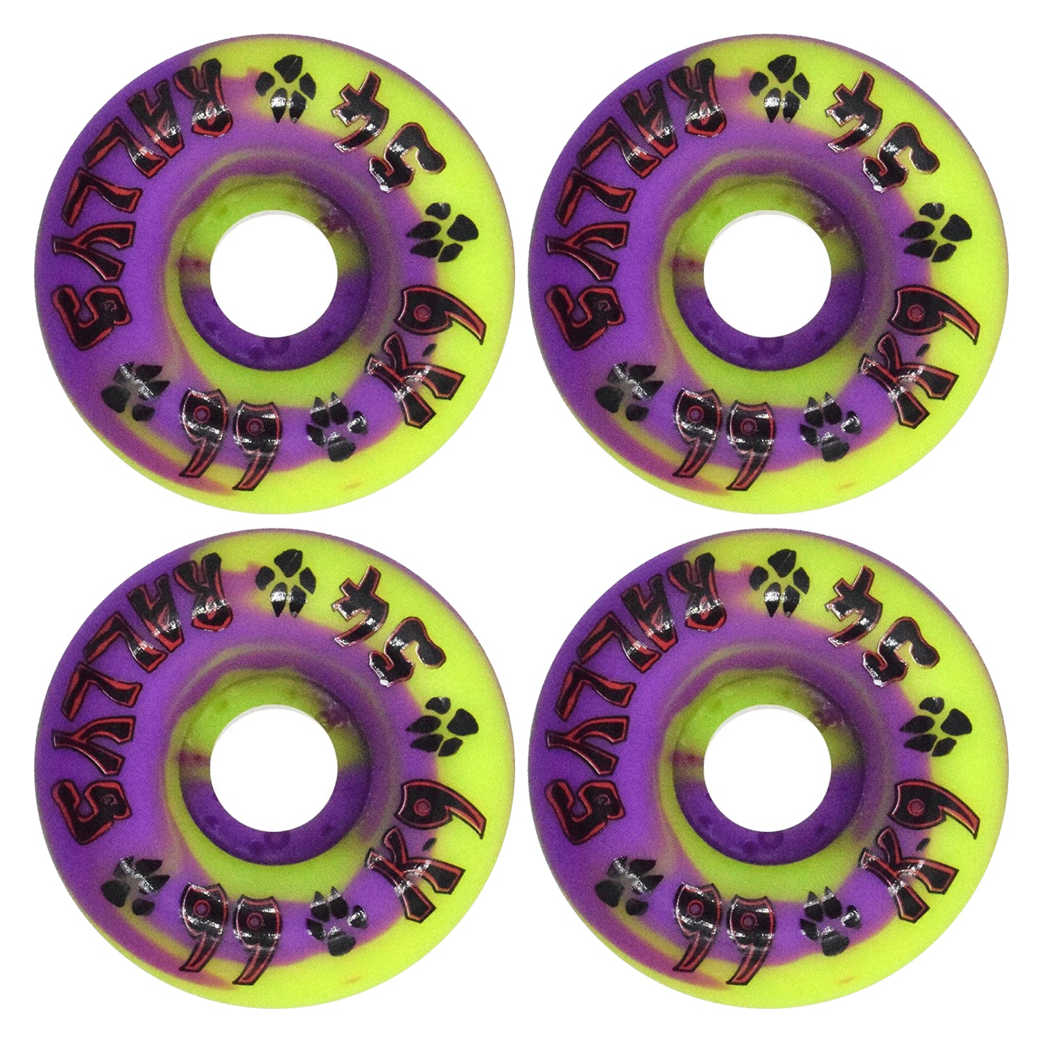 Dogtown Skateboard Wheels 54mm K-9 Rallys 99A Yellow/Purple