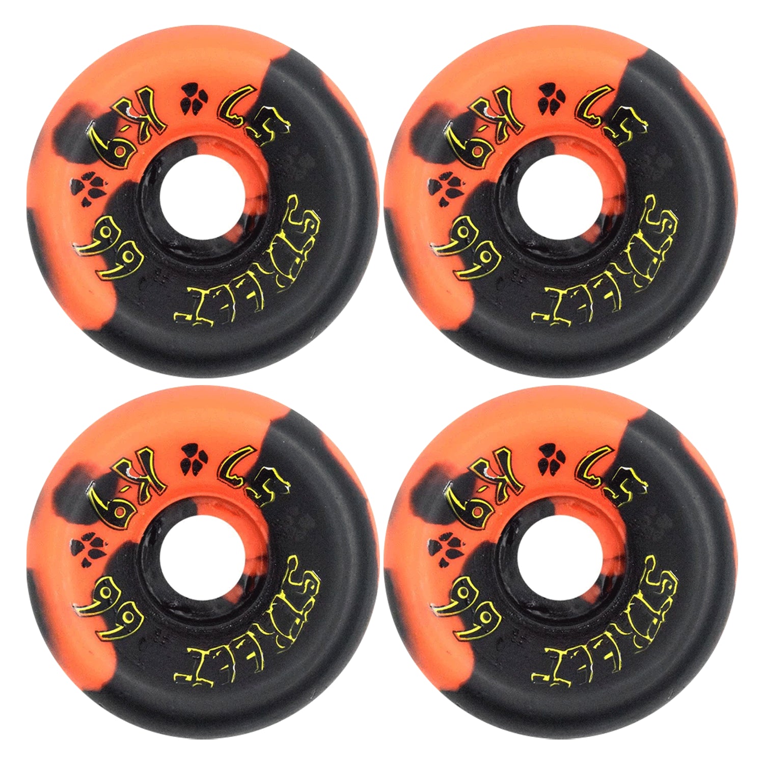 Dogtown Skateboard Wheels 57mm K-9 80's 99A Orange/Black Swirl Old School