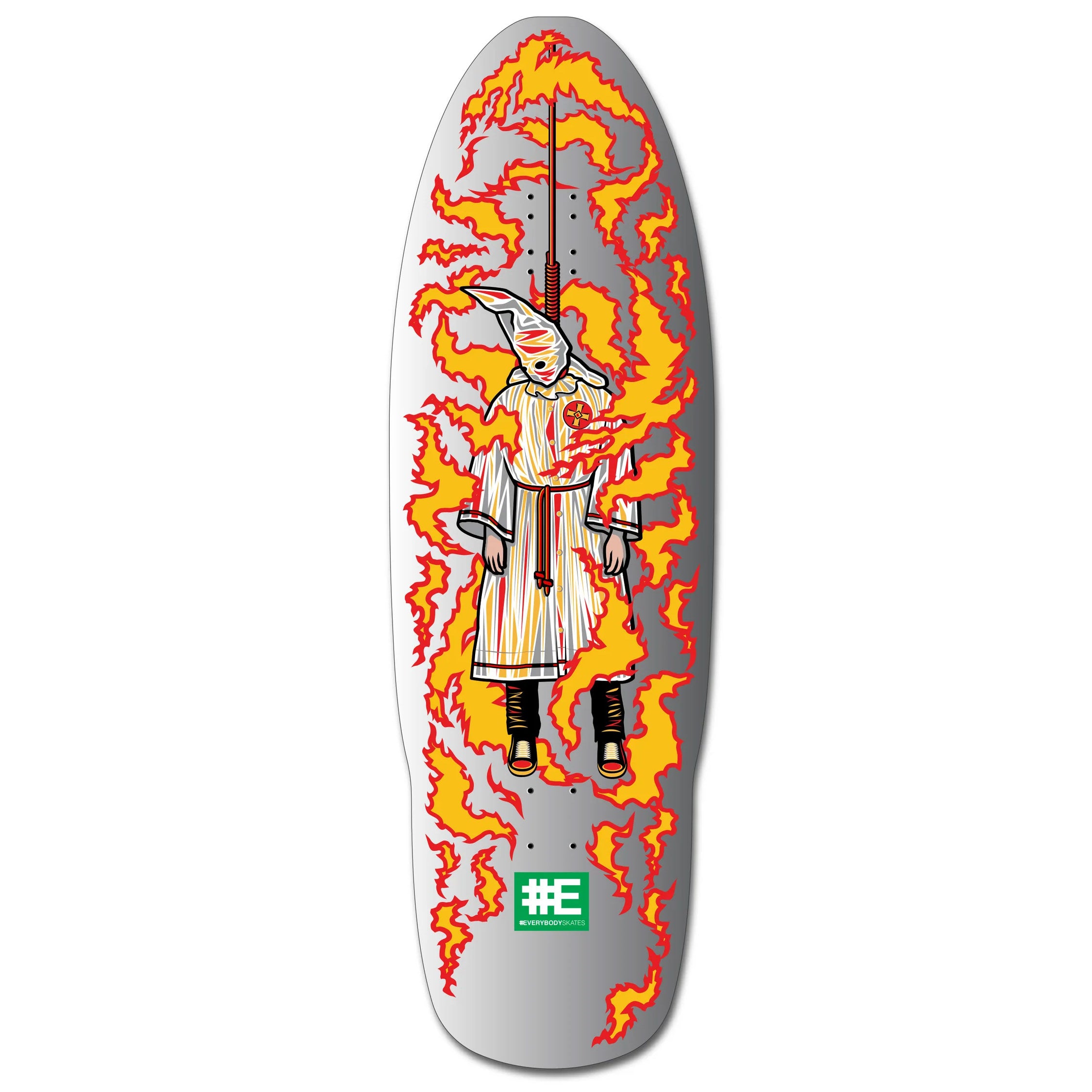 Everybody Skates Skateboard Complete Burning Klansman Big Board Silver 12.3" x 40" with Independent Trucks, Spitfire Wheels