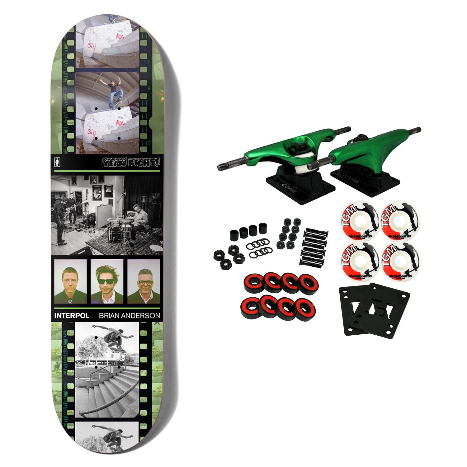 The G008 shape. Round nose and tail, straight rail. The go-to 8″ shape since 2000. Yeah Right Interpol X BA X Atiba Deck. Measures 8.0" x 31.875" with a 14.25" wheelbase. Comes with Core trucks, 52mm TGM logo wheels, Amp abec 5 bearings, Black Diamond Griptape, risers, and hardware. Core trucks are light weight and feature heavy duty aluminum with grade 8 steel kingpins and axles, as well as USA made bushings and pivot cups. 52mm 99A are the perfect wheels for both street and park skating. Like the name states, Amp bearings are stimulants for your wheels! Light synthetic oil, Delrin Crowns, and Rubber Serviceable Shields are a few of the things that makes these bearings one of the best Abec 5 rated bearings on the market. Arrives un-assembled which allows for customization and a feeling of accomplishment. Skaters love building their boards! Easy to assemble!