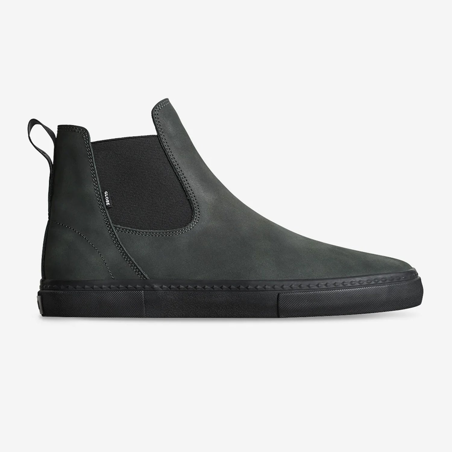 Inspired by the classic Aussie Chelsea Boot, this vulcanized high top slip-on is designed for skateboarding featuring Globe's Shockbed insole for impact control and Super-V outsole for enhanced grip and board feel.