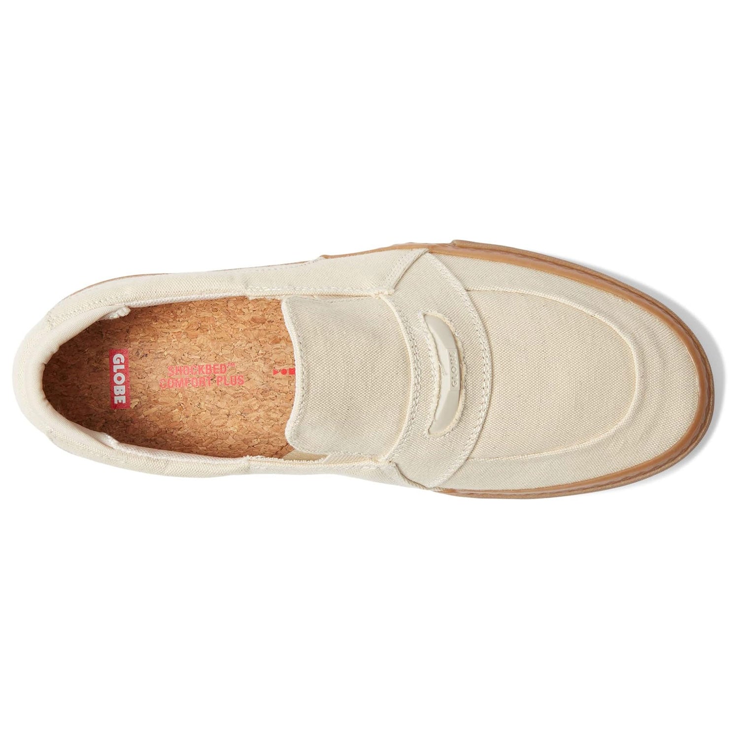 A comfort-savvy slip-on loafer designed specifically for skateboarding, featuring Globe's patented shockbed insole for impact control and a superior grip outsole for board feel and stability. The Liaizon returns this Spring Summer in a breathable textile upper and a good-looking regrind gum sole.