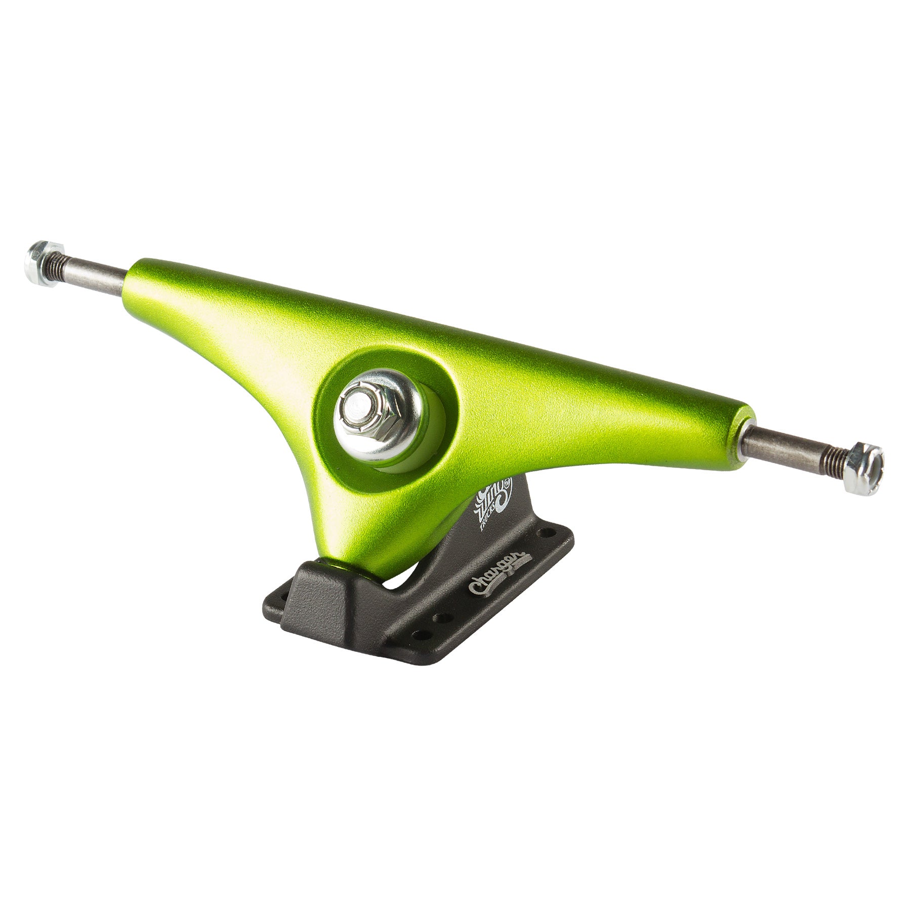 Gullwing Charger trucks feature a reverse kingpin style, best used for cruising and carving, and the knurled kingpin stays securely in place while riding all types of terrain. The 356 Aluminum and Chromoly axle have become the gold-standard of the truck industry and have proven themselves through years of use and abuse. This heat-treated aluminum cannot be die-cast, and is responsible for the strength and familiar grind characteristics you should expect from a quality truck. Additional benefits come from the integrated speed ring on both the raked hanger and axle nut. The rings provide improved alignment to your bearings, for better speed roll and longevity. They also reduce friction, by only touching the inner race of the bearing and because they are integrated, you can’t lose them! Charger trucks feature a 6-hole baseplate for old school or new school mounting and come with 89A conical bushings. Additionally, these trucks have a weight-saving pocketed hanger design and a 50-degree weight-saving baseplate.