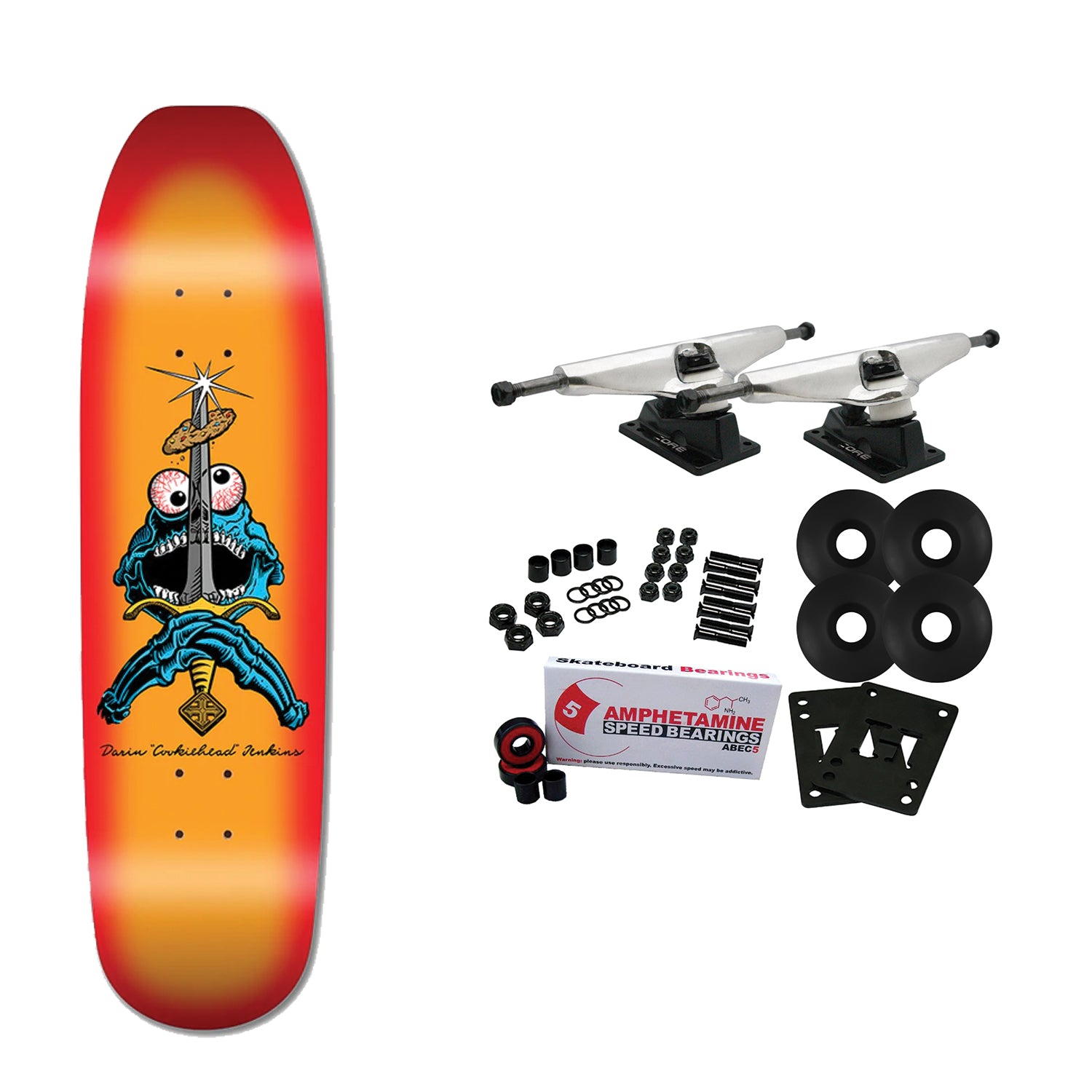 Cookie is back with another fun tribute deck to a classic design that is drawn by renowned skate artist Tim Baron. The bottom is a unique Epoxy laminated Everslick material that is digitally printed into the plastic that improves all Board and Lipslides. The graphic stays on and last longer than traditional printing methods. The additional Epoxy lamination also creates a stiffer and more durable deck. Colors of the dyed veneer are mixed, the bottom graphic colors are not. Comes with Core trucks, 58mm 97A wheels, Amp abec 5 bearings, Black Diamond Griptape, risers, and hardware. Core trucks are light weight and feature heavy duty aluminum with grade 8 steel kingpins and axles, as well as USA made bushings and pivot cups. 58mm 97A are the perfect wheels for both street and park skating. Like the name states, Amp bearings are stimulants for your wheels! Light synthetic oil, Delrin Crowns, and Rubber Serviceable Shields are a few of the things that makes these bearings one of the best Abec 5 rated bearings on the market. Arrives un-assembled which allows for customization and a feeling of accomplishment. Skaters love building their boards! Easy to assemble!